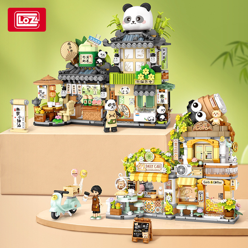 リー智lozパンダの街並みシリーズの積み木喫茶店の国潮は組み合わせのおもちゃの男の子の女の子を遊んでプレゼントの卸売りを送ります。