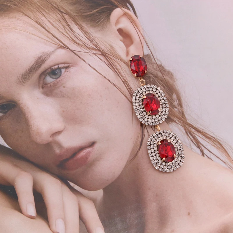 国境を越えたファッションの四角いイヤリングカラーレトロなドリル耳飾りの高級感シンプルなアクセサリーの女性earrings