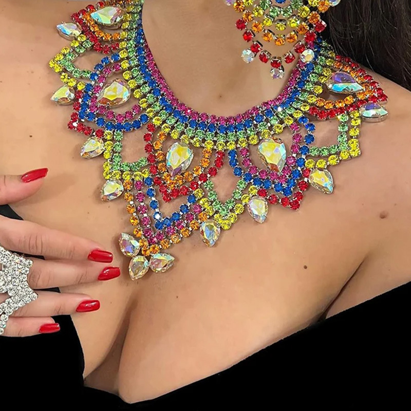 欧米の大げさなネックレスのデザイン感の多層のダイヤモンドの水滴の鎖の女王のショーの装飾のnecklace
