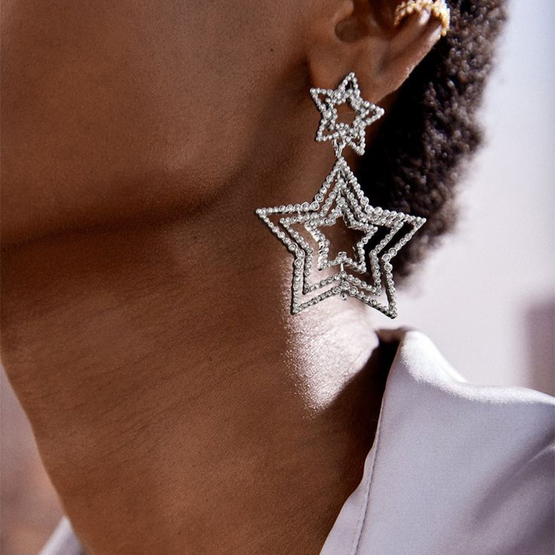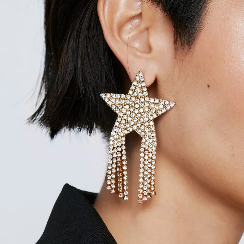 国境を越えた新しい五角星流蘇イヤリングファッションのドリル耳飾りが輝いている