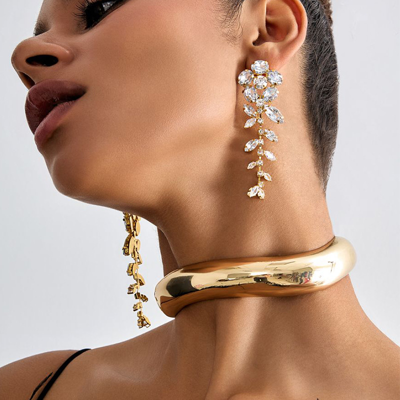 2023新型花イヤリング欧米のドリルイヤリングパーティー
