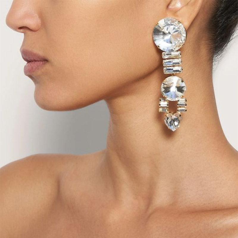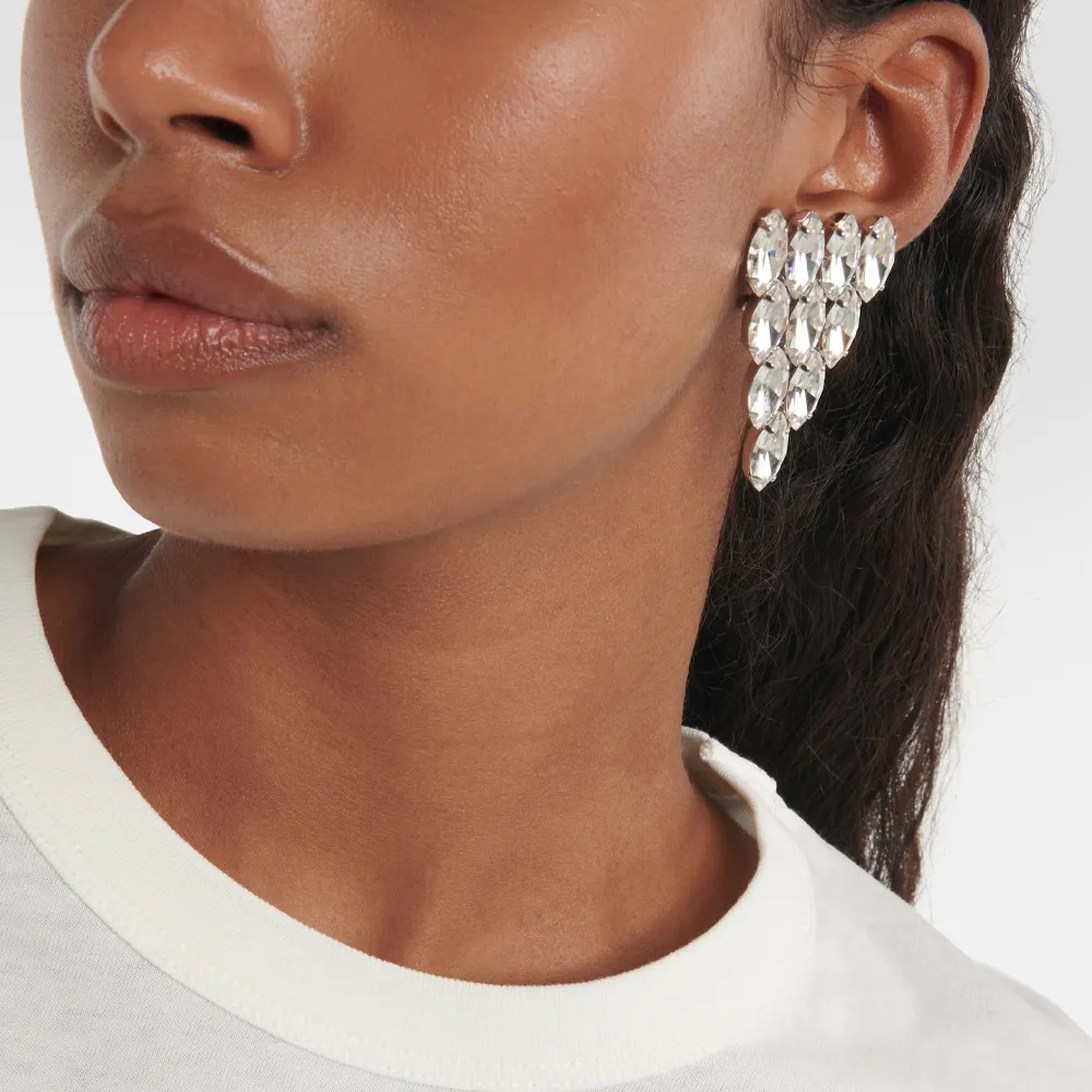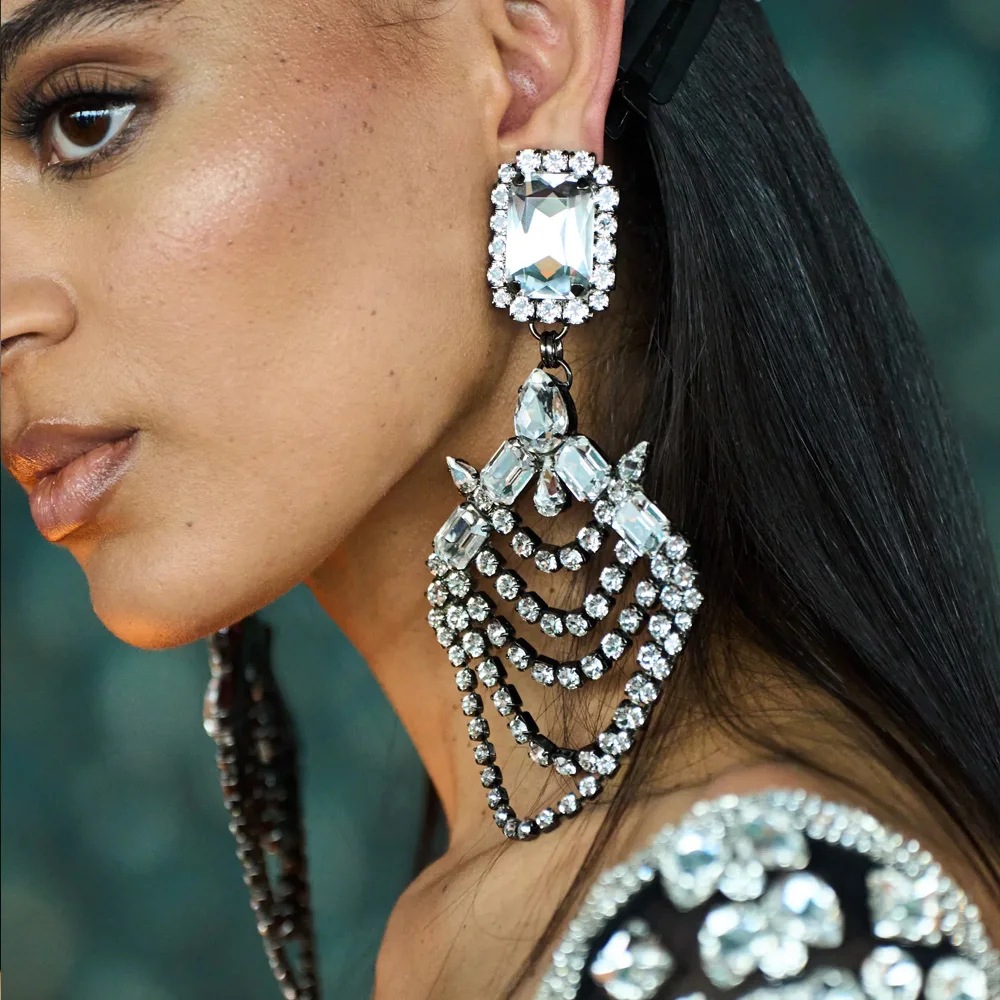 欧米のレトロな誇張のイヤリングの超きらめきの爪のチェーンの楕円のドリルの耳飾りの高級感の宴会の装飾のearrings