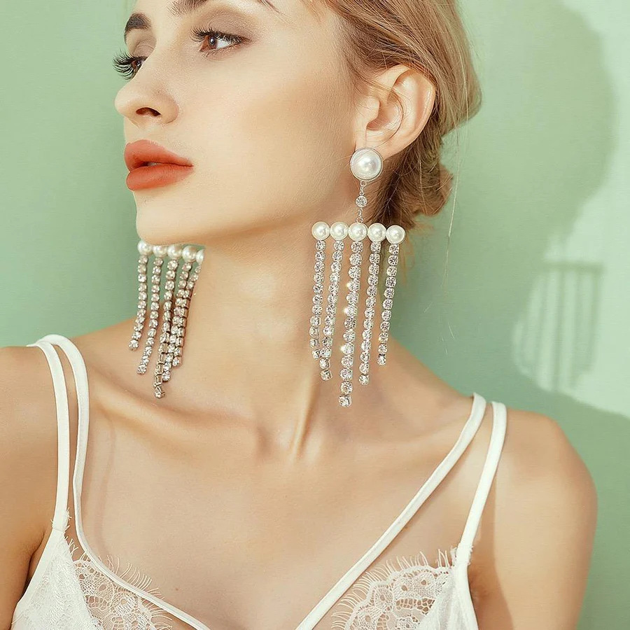 国境を越えた新しいフリンジイヤリングの高級感があるロングタイプのドリルイヤリングファッションのアクセサリーearrings