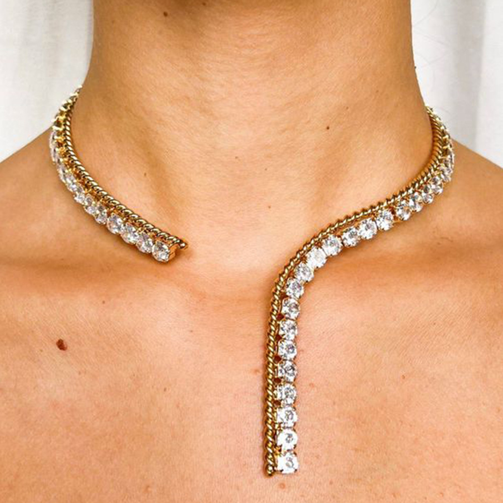 速売通の人気金属のフリンジの首輪は軽くて豪華なドリルの鎖の骨のチェーンの爆発の簡単な装飾品のnecklaceです。