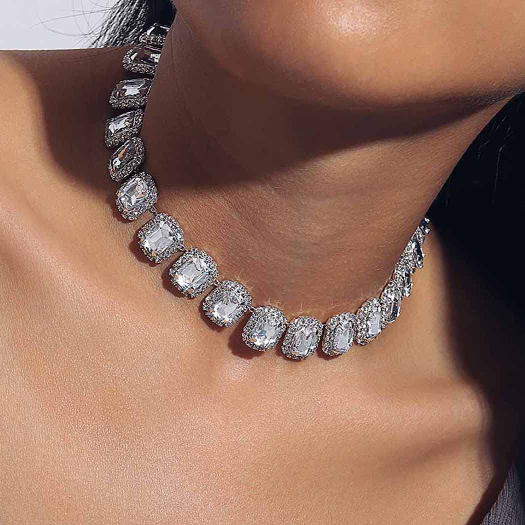 欧米の人気のあるドリルのネックレスが爆発して、正方形のクロスボーダーのシンプルなドリルの首のチェーンのファッションの装飾の女性necklace