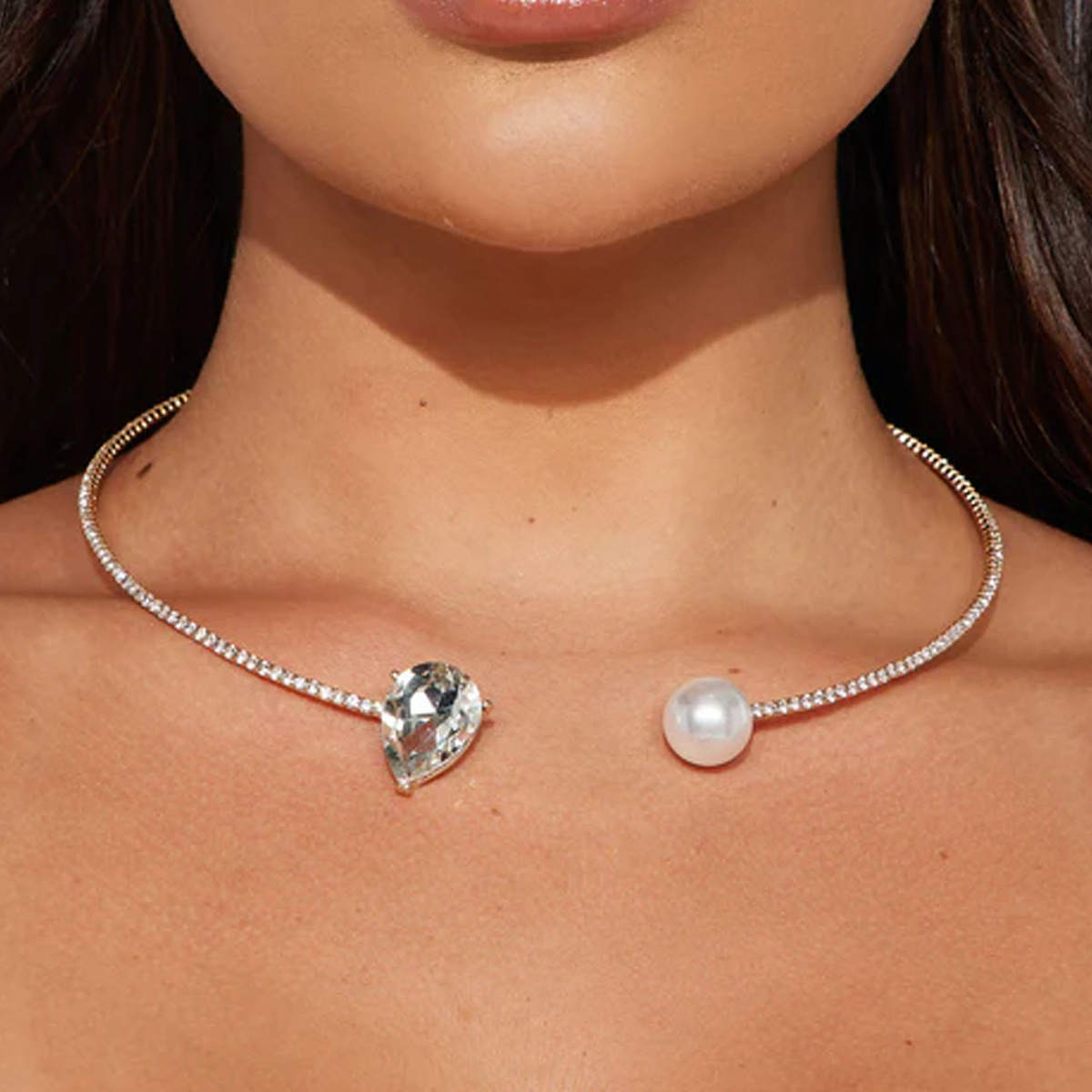 欧米の花嫁のファッションのドリルの首輪の女性の満ドリルの気質の水滴の形のネックレスのシンプルな装飾品の女性のnecklace