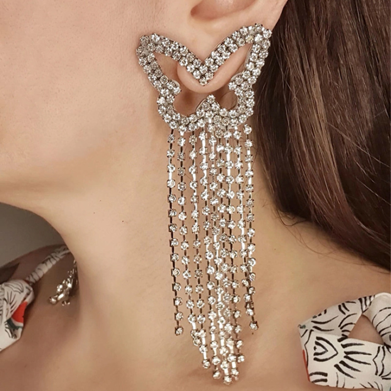 速売通の人気ロングタイプの蝶流蘇イヤリングファッションのドリルピアスが輝いている