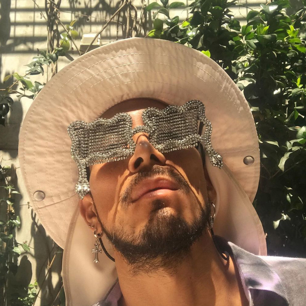 個性的なレトロな四角いメガネの枠はヒップホップ欧米のドリルのメガネの枠の街で撮影します。