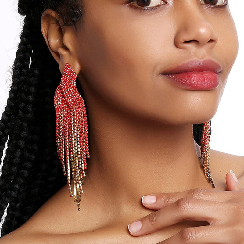 欧米のフルドリルのタッセルのイヤリングの気質の高級感は誇張しています。
