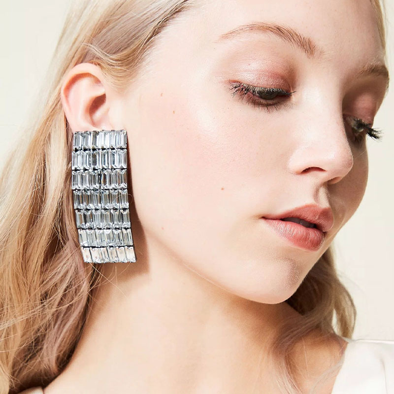 個性的でシンプルな長方形のイヤリングは誇張しています。