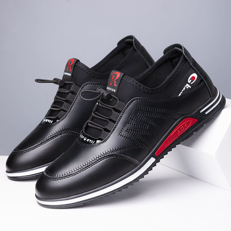 革靴メンズロートップラウンドトゥソフトソールカジュアルシューズトレンディなスリッポンドライビングシューズ快適な中年靴メンズクロスボーダー