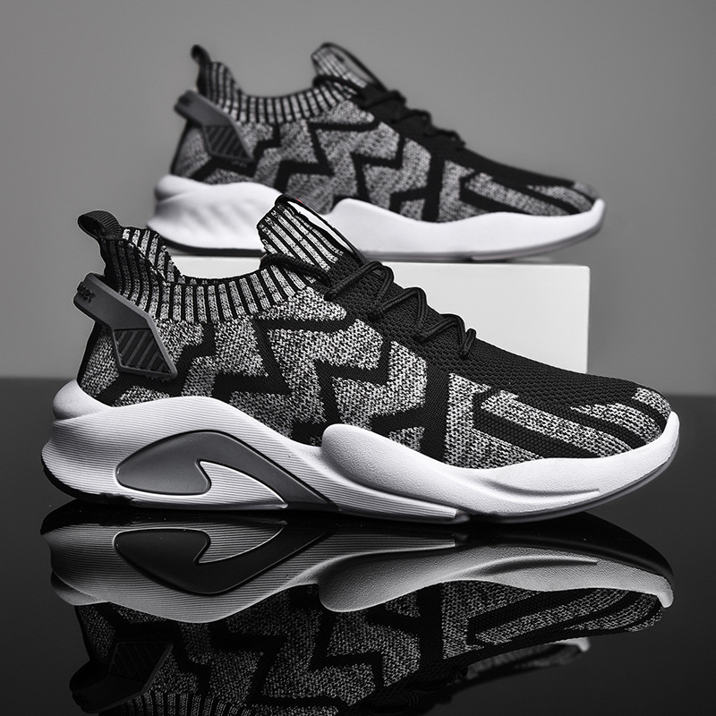 メンズスポーツシューズ 2025年春新作 韓国風 メンズランニングシューズ フライニット 通気性ソックスカットシューズ 流行靴 クロスボーダーシューズ メンズ