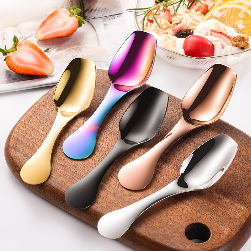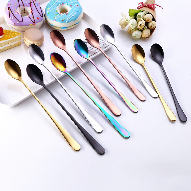 工場カスタマイズクリエイティブステンレス厚手長柄氷スプーン攪拌スプーンコーヒースプーン金メッキ楕円スプーンロゴ