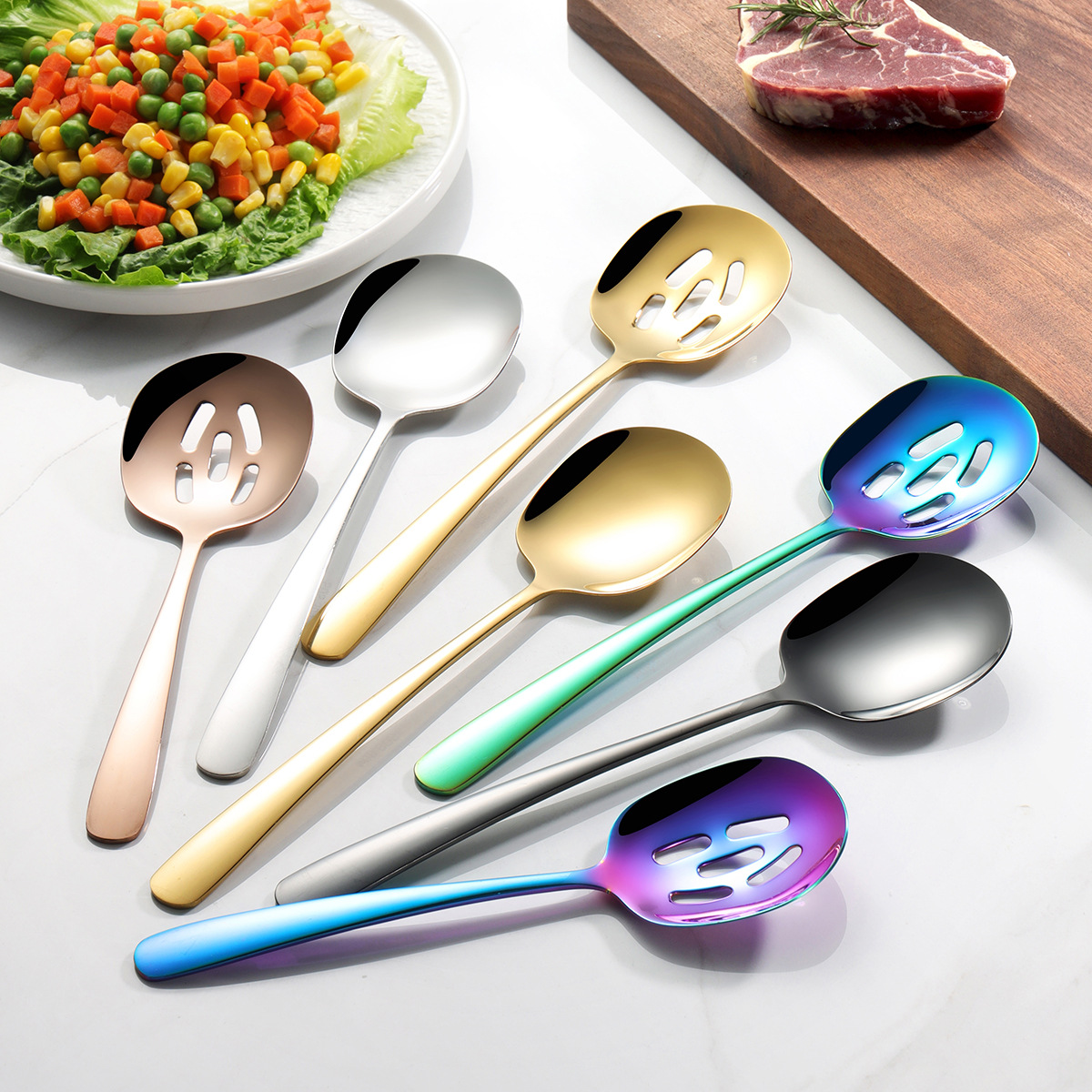 304ステンレスのシンプルで厚い長い柄の家庭用料理スプーンの大きいサイズの小さいレストランのホテルのスプーンの公漏