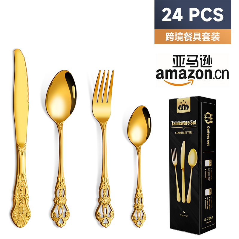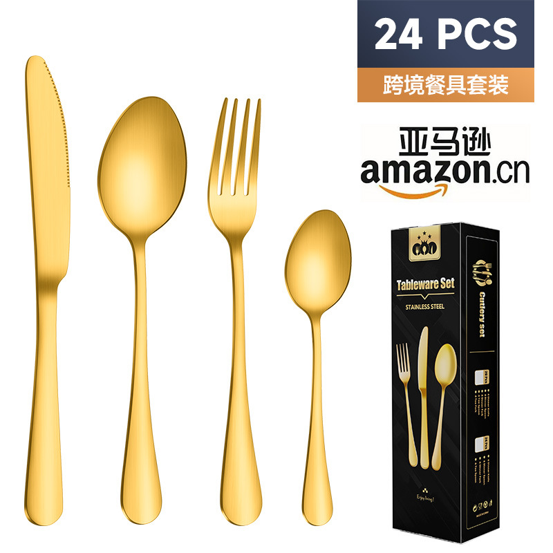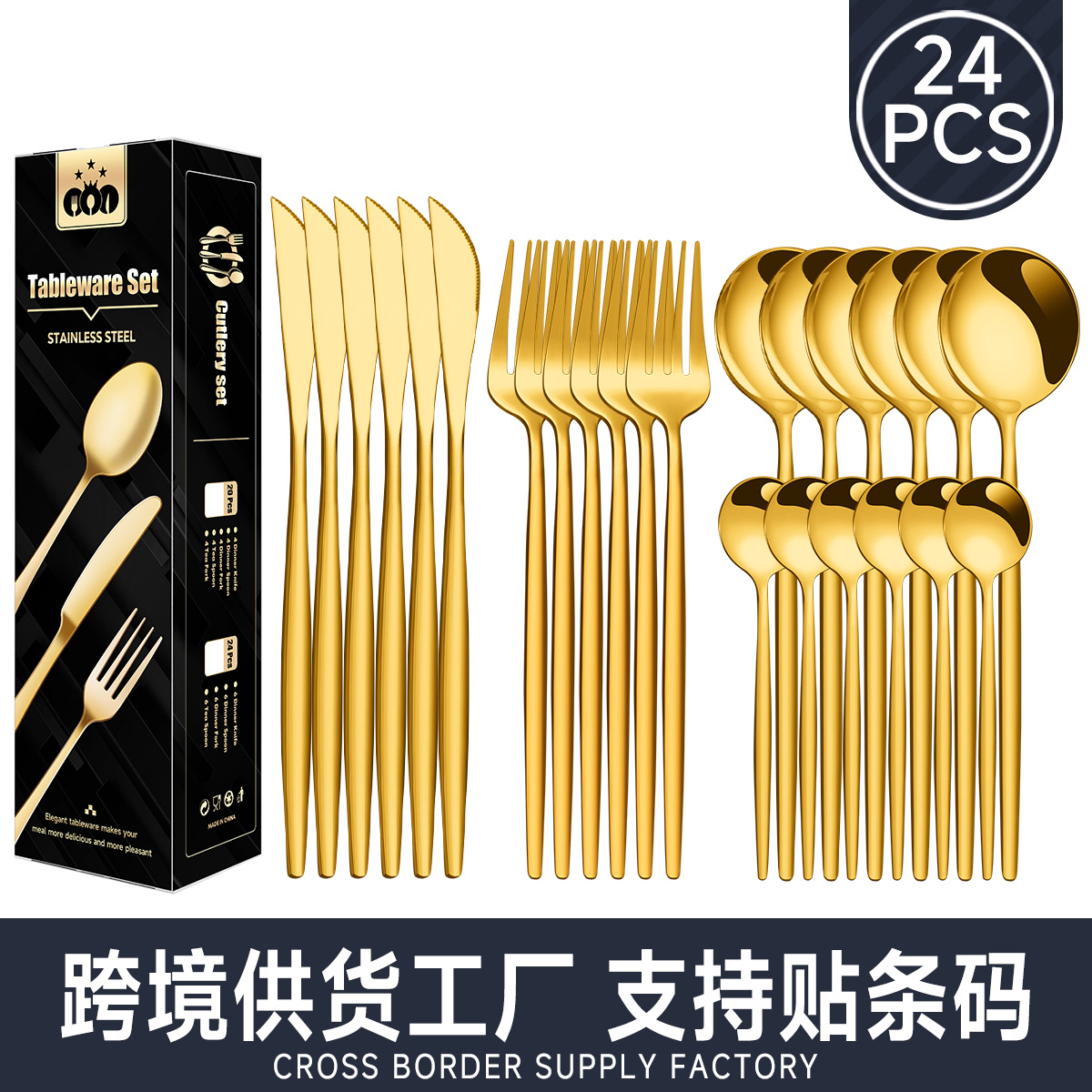 1010砂光ステンレスナイフフォークスプーン食器6人分24点セットクロスボーダー洋食ステーキナイフフォーク礼箱