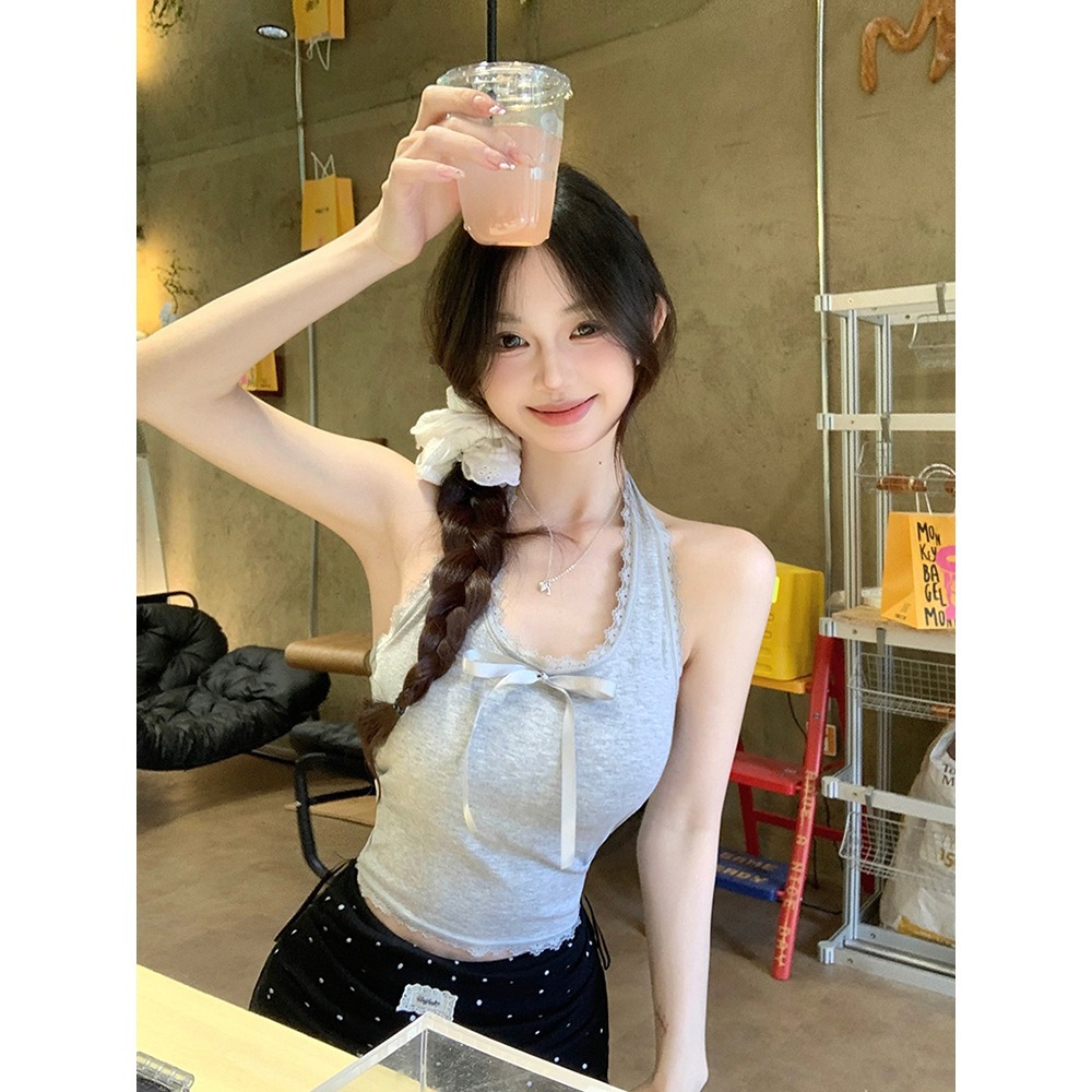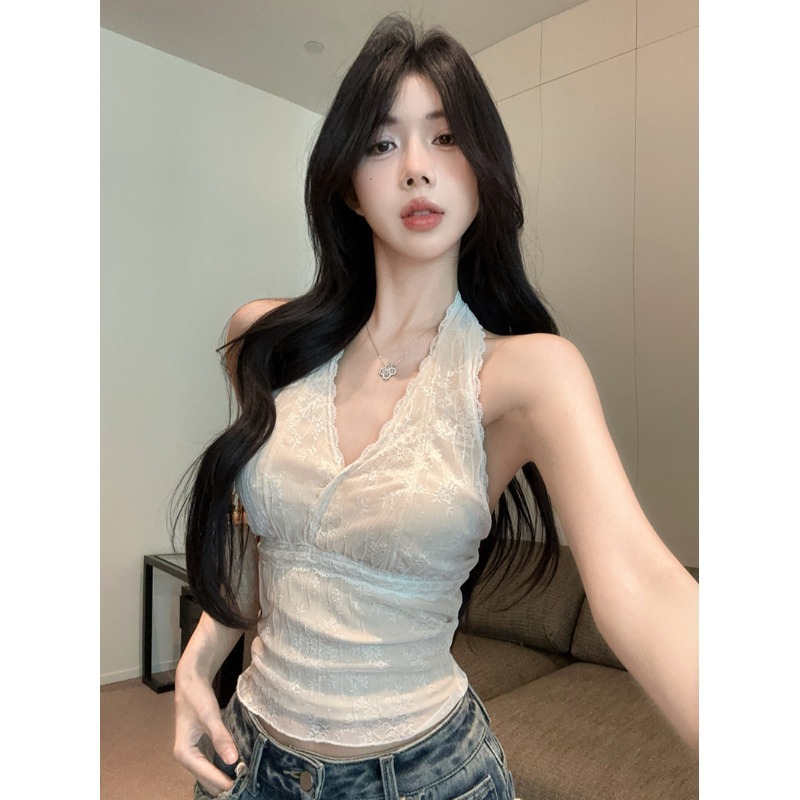 MR【オリジナルレースプリーツ】ニッチ気質ノースリーブサスペンダーレディース夏ホットガールホルターネックスリムで美しい痩身