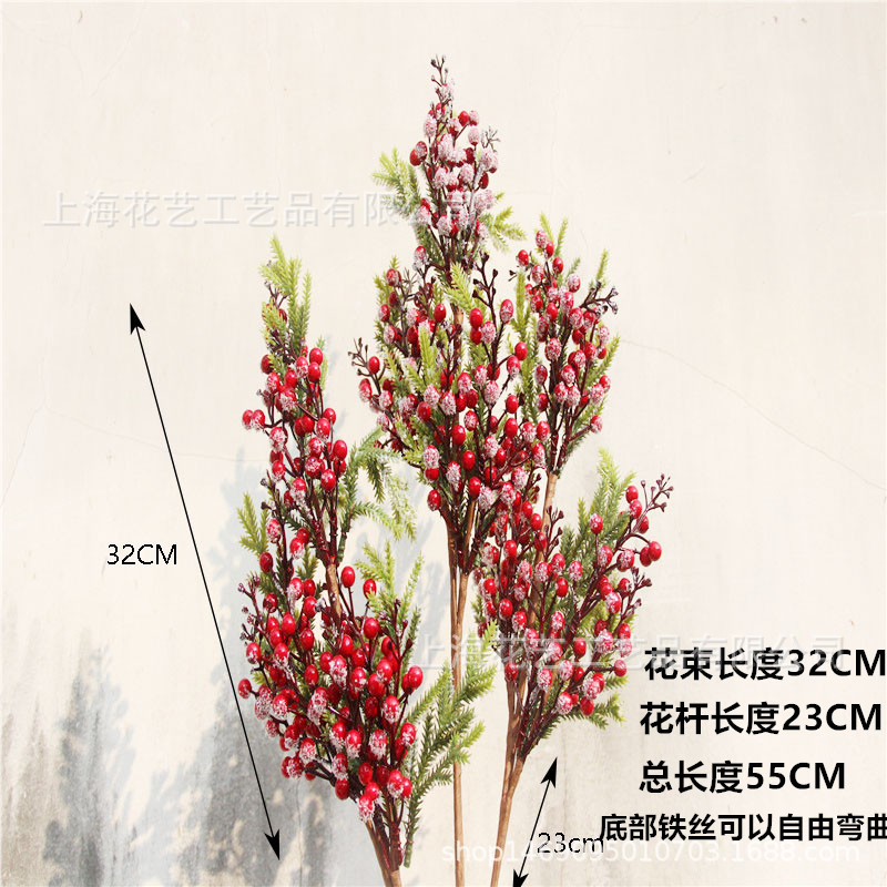 クロスボーダークリスマス挿し木飾り松針花枝アクセサリー祝日シミュレーション植物赤ベリー松果枝プラグイン