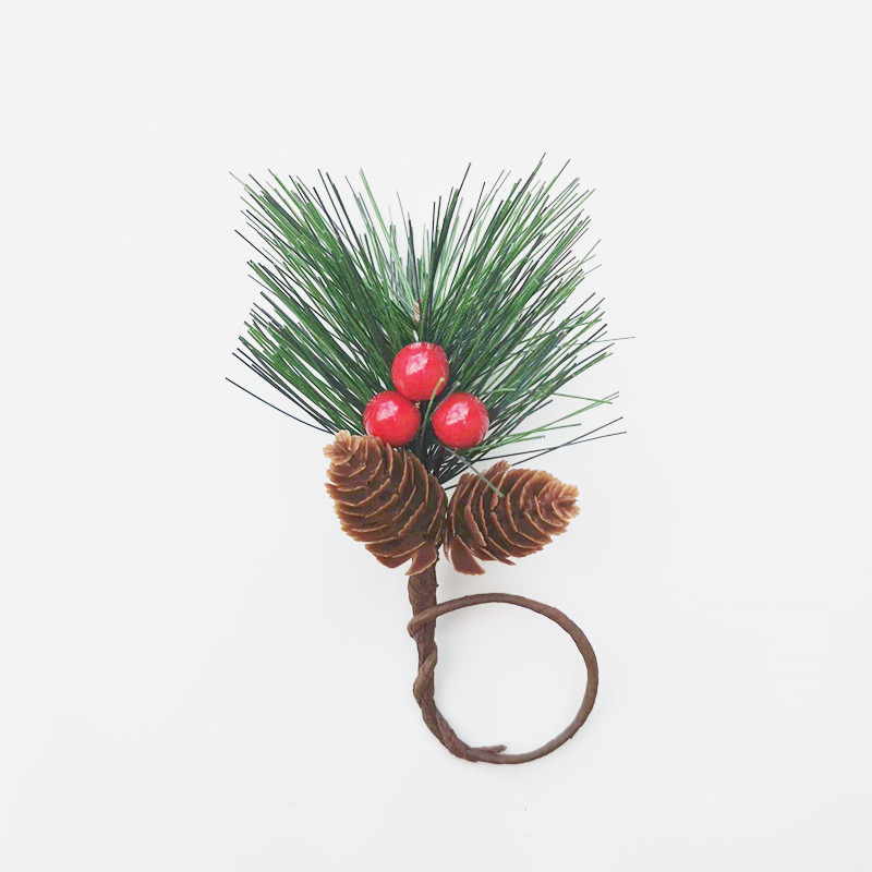 国境を越えた新しいクリスマスナプキンリング食器装飾リングシミュレーション松針小ベリーナプキンボタン祝日花束アクセサリー