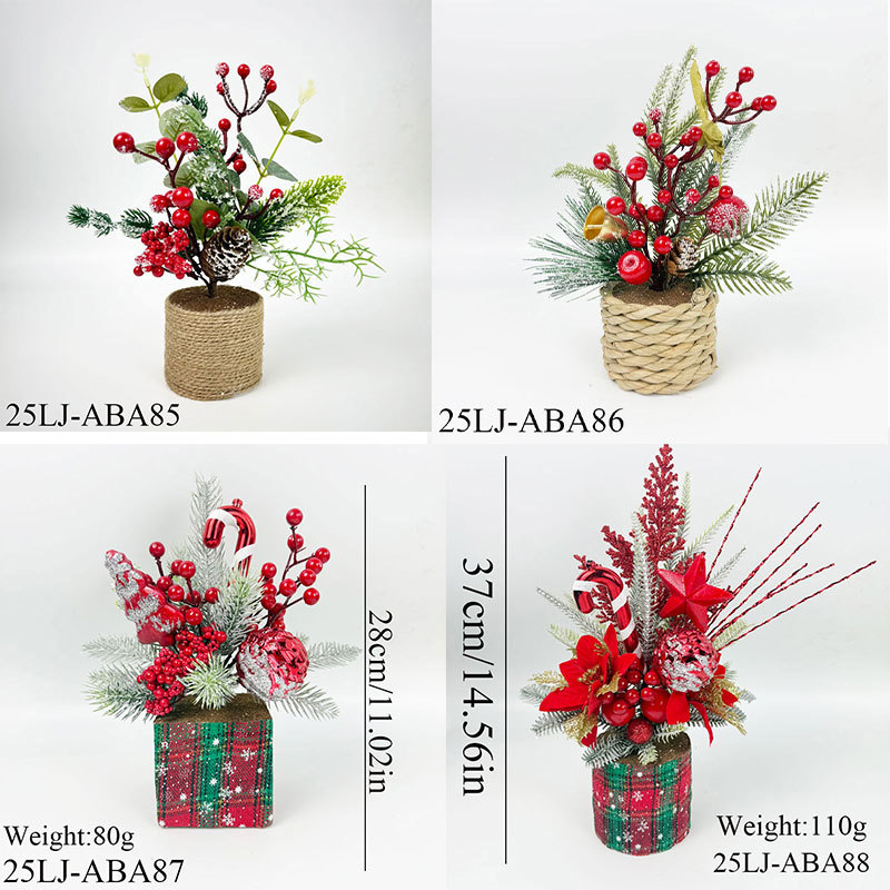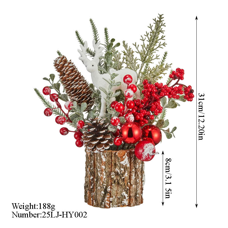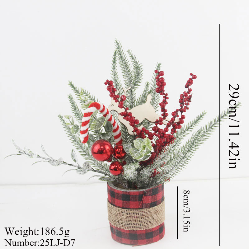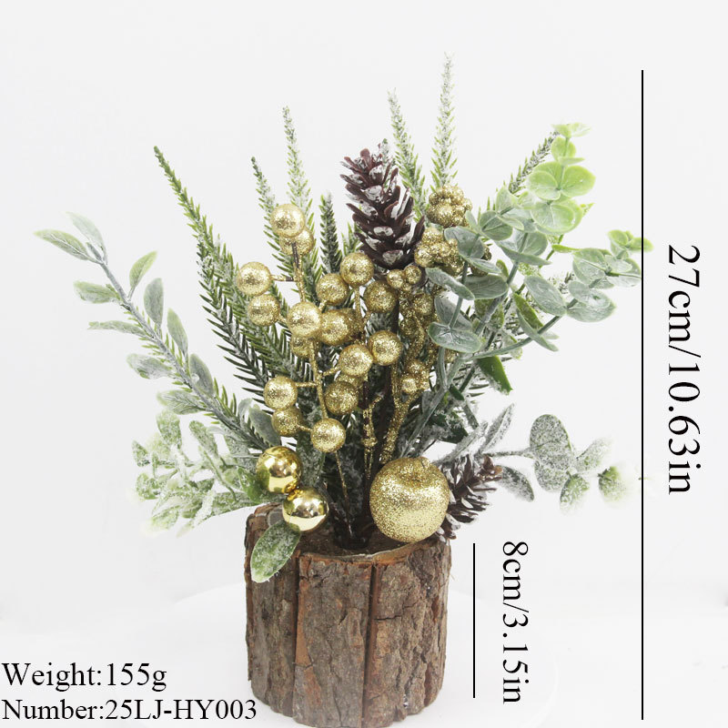 クロスボーダーミニクリスマスツリーオーナメントクリスマスデコレーション天然樹皮木のブリッジベリーシミュレーショングリーン植物小さな鉢植えソース