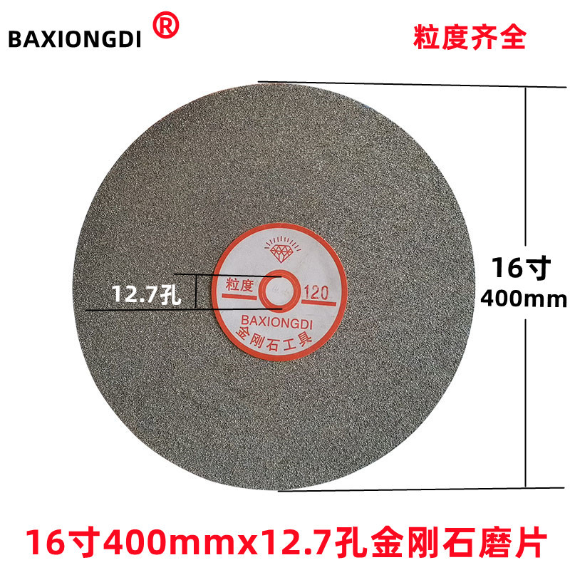 ダイヤモンド宝石研削盤400mm16インチ2.7穴25穴印鑑砂盤メッキ合金砥石片水研