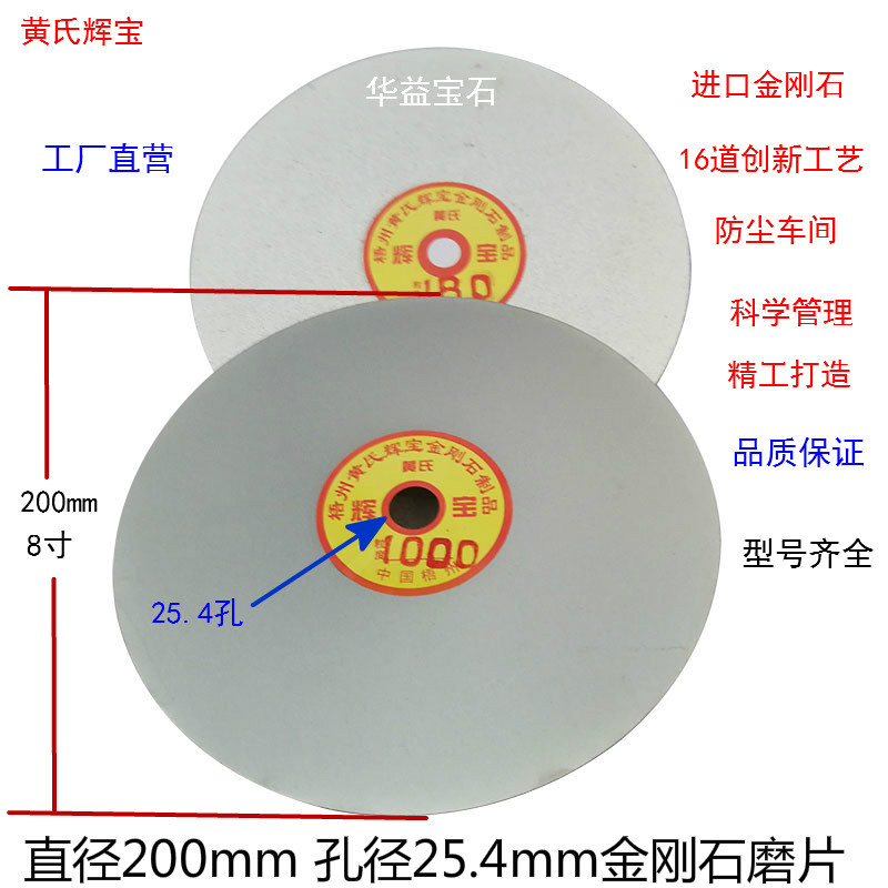 ダイヤモンド砥石8インチ200mm25厚さ25.4穴合金プラスチックコア砥石砥石黄氏輝宝