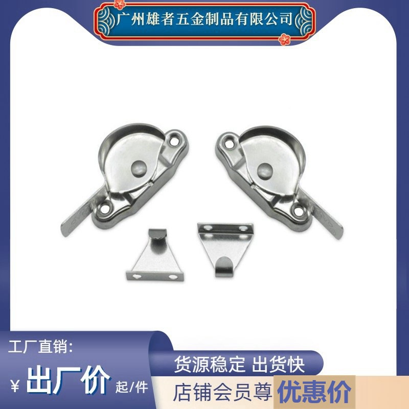 ステンレス製の三日月錠は、ドアロックの窓を押してアルミ合金窓の盗難防止ロックドアと窓の部品を掛けます。