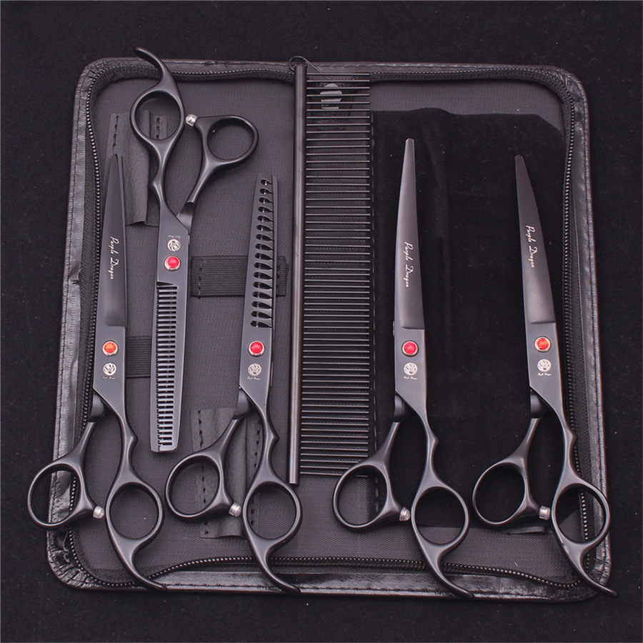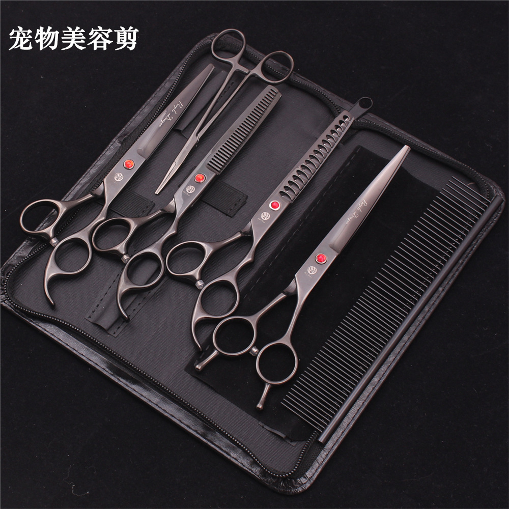 紫龙7寸美容剪刀宠物剪子修毛直剪翘剪打薄鱼骨齿牙剪排梳5件套装