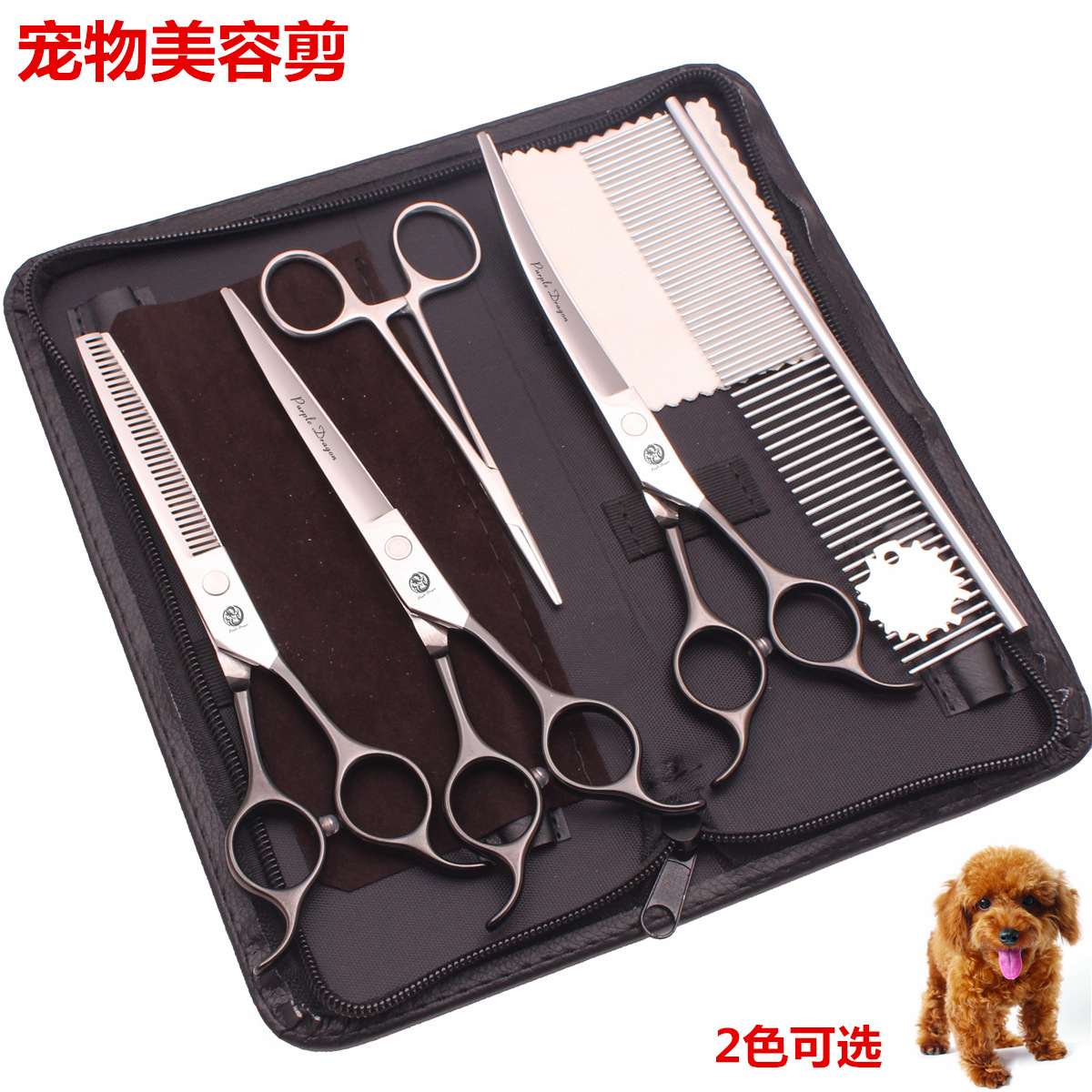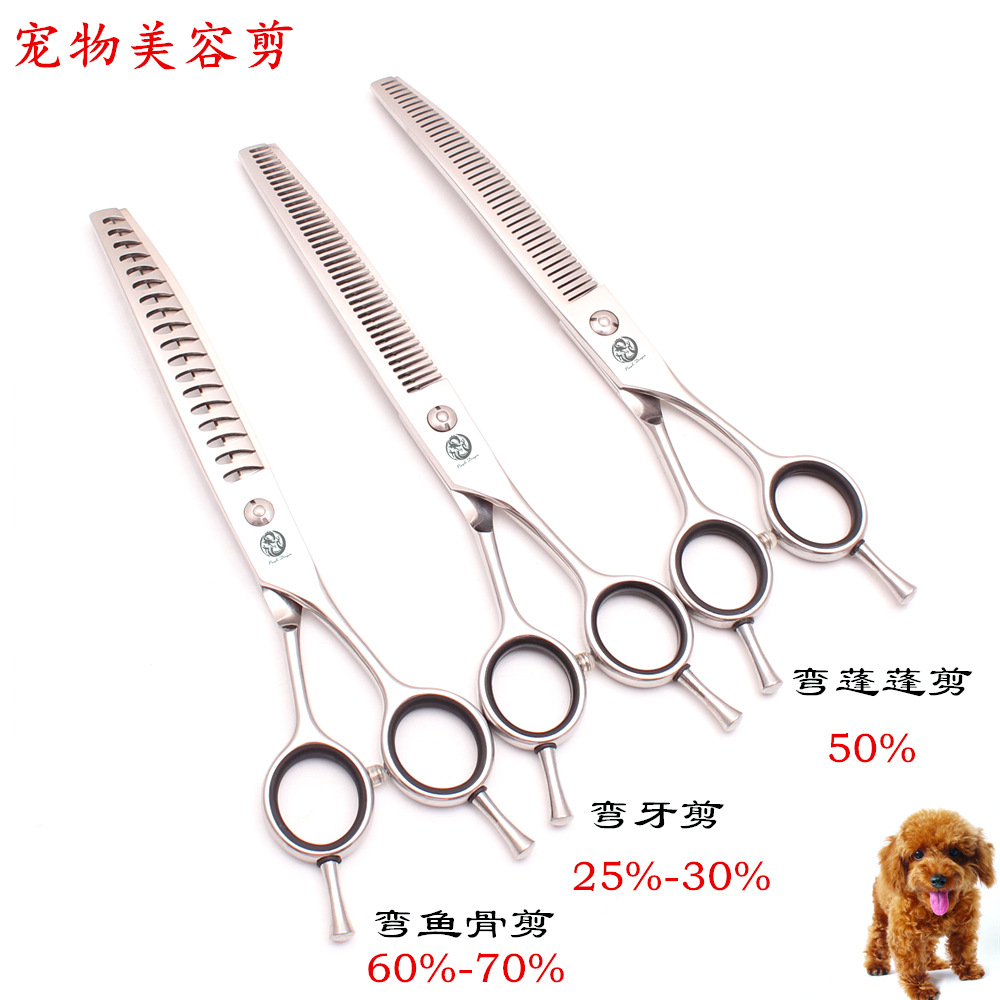 紫龍美容師専門ペットはさみ固尾双用曲げ切り犬猫修毛直切りセット