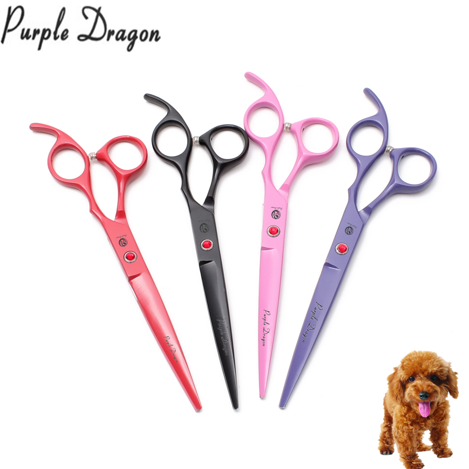 紫龍7.0インチペット修毛直切テディ犬修毛平切美容ハサミカラー塗装4色オプション