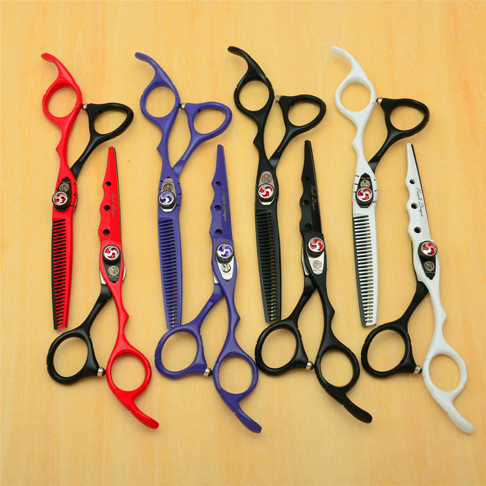 火匠黒赤白紫6.0インチ塗装理髪ハサミは前髪を平らに切って薄い歯を切って髪を砕く
