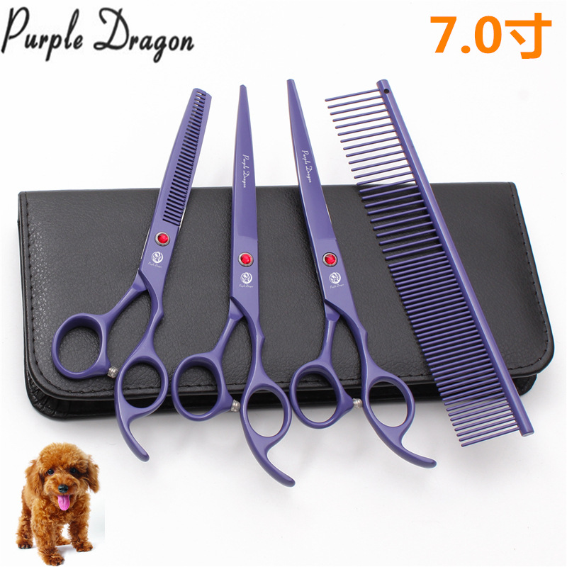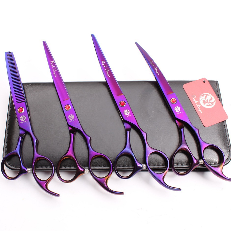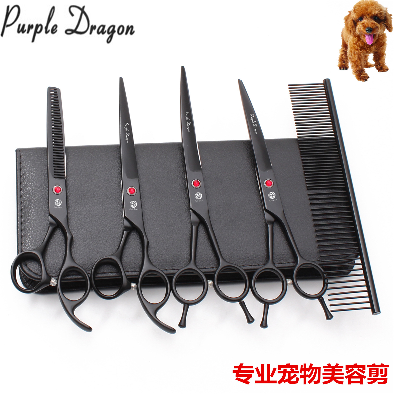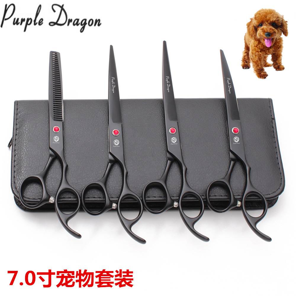 紫龍漆ペットセット美容ハサミ犬毛切り工具ストレートカット4本入り7.0