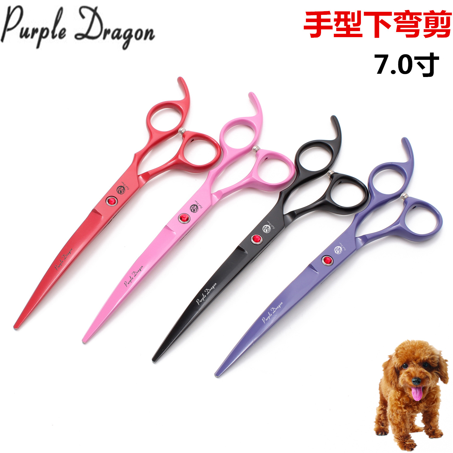 紫竜の漆のカラーの7.0インチの手の型のペットのはさみの下で曲げて犬の美容を切ります。