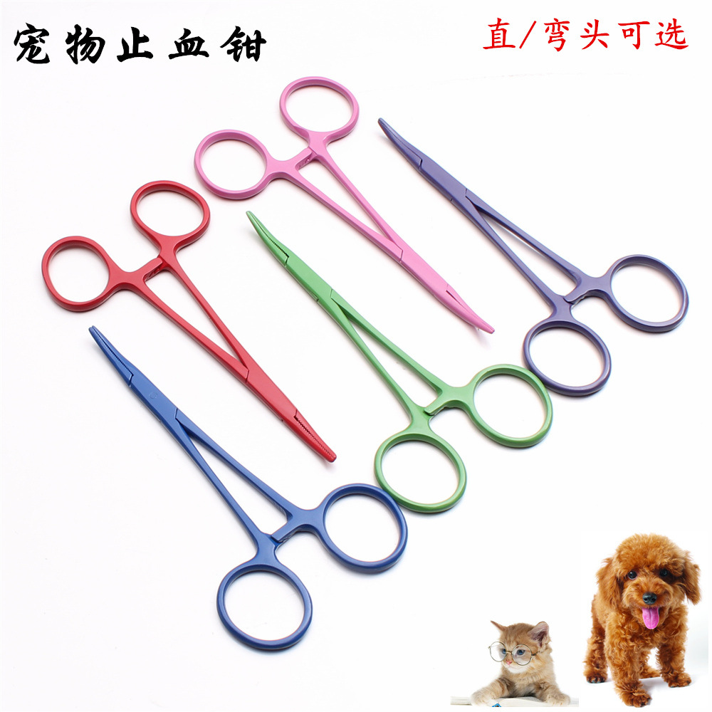 高品質ステンレスカラー止血鉗子ストレート頭エルボ猫止血鉗子犬抜毛鉗子ペット抜耳毛美容