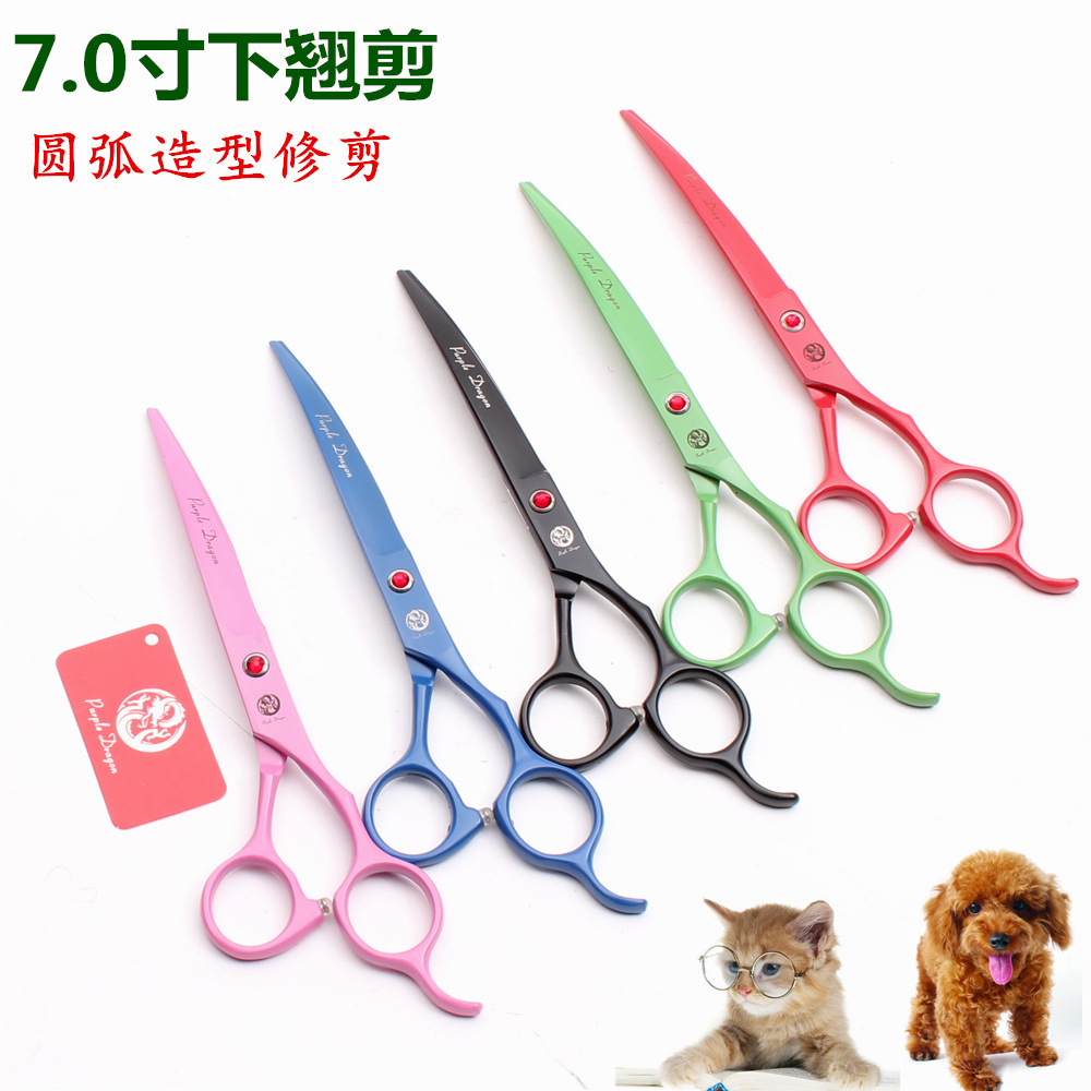 紫龍7.0インチペットハサミ黒緑赤ピンクブルー下曲げカットテディ犬美容毛ハサミ