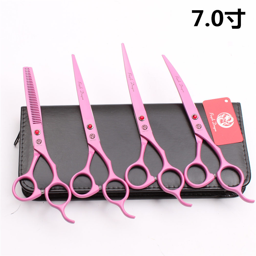 紫龍7.0インチペットハサミピンクの平切歯ハサミ