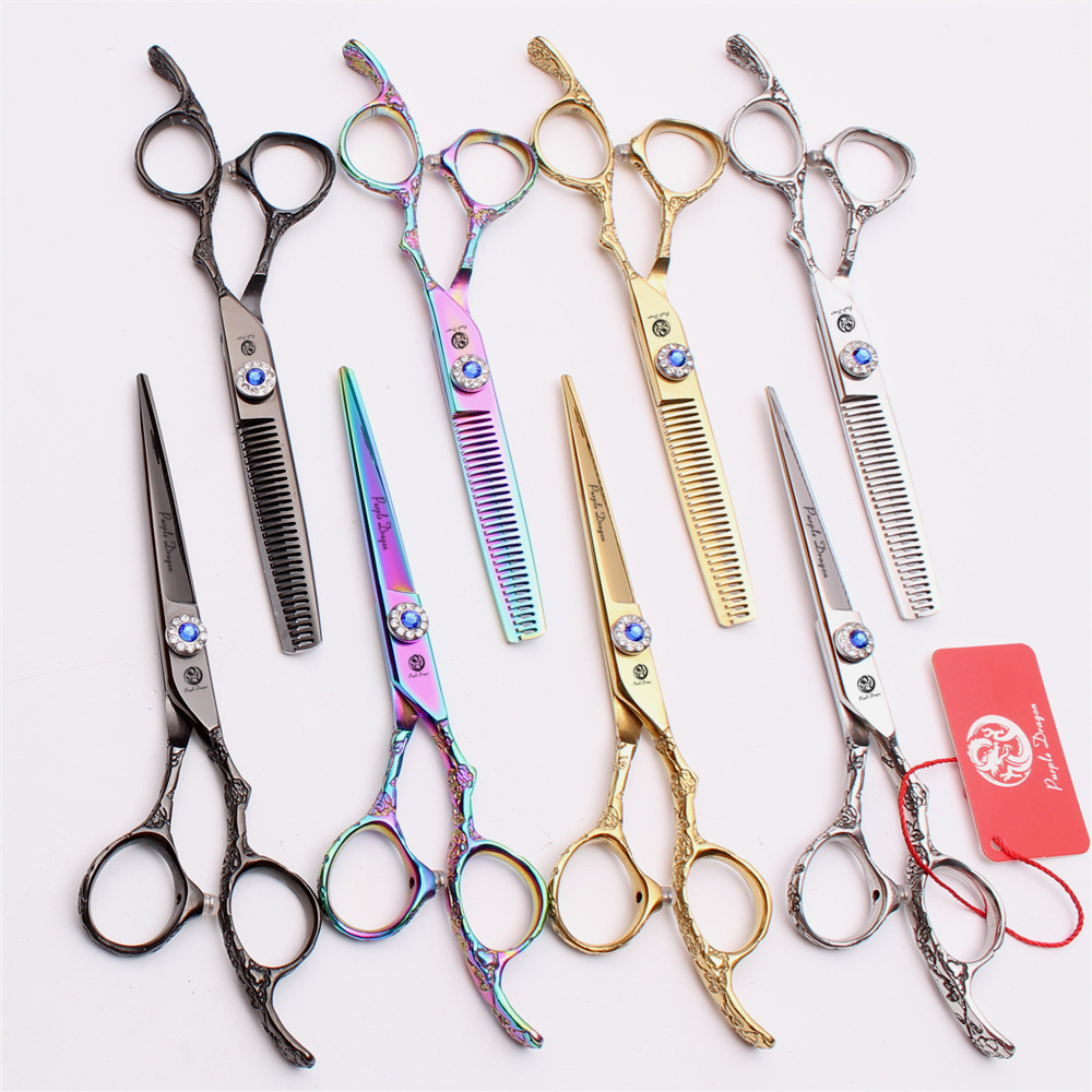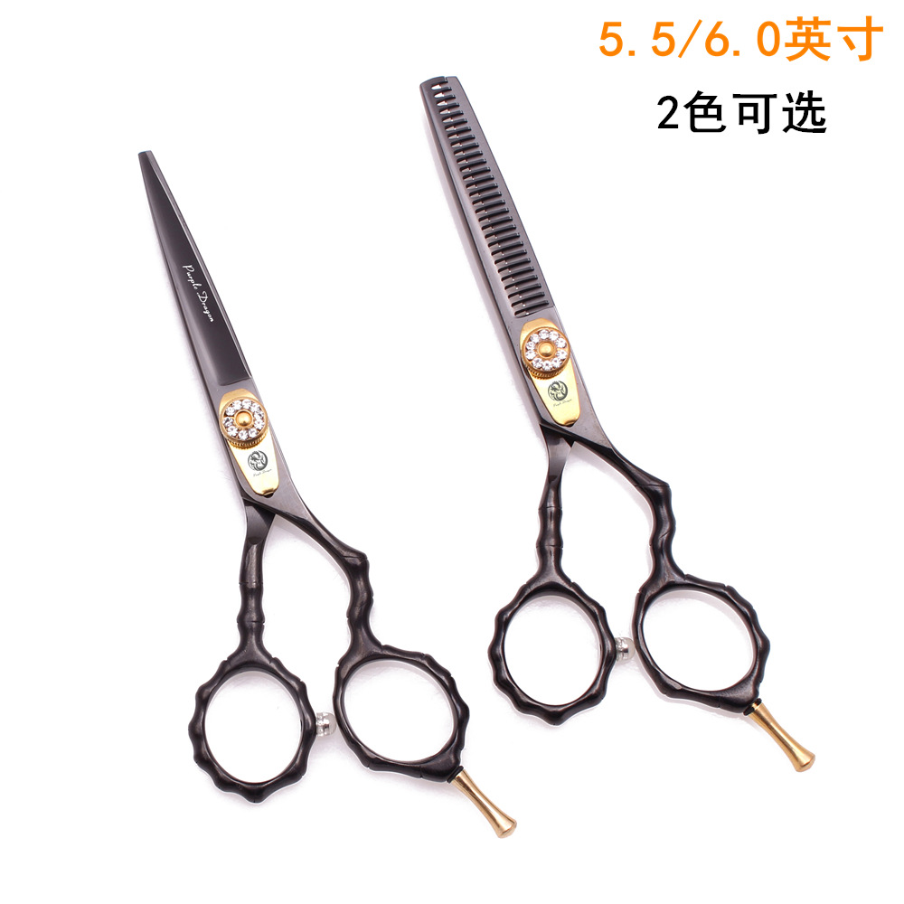 紫龍6.0寸怪龍柄美髪ハサミ平切歯切り理髪前髪薄切り刀金/彩/黒/銀