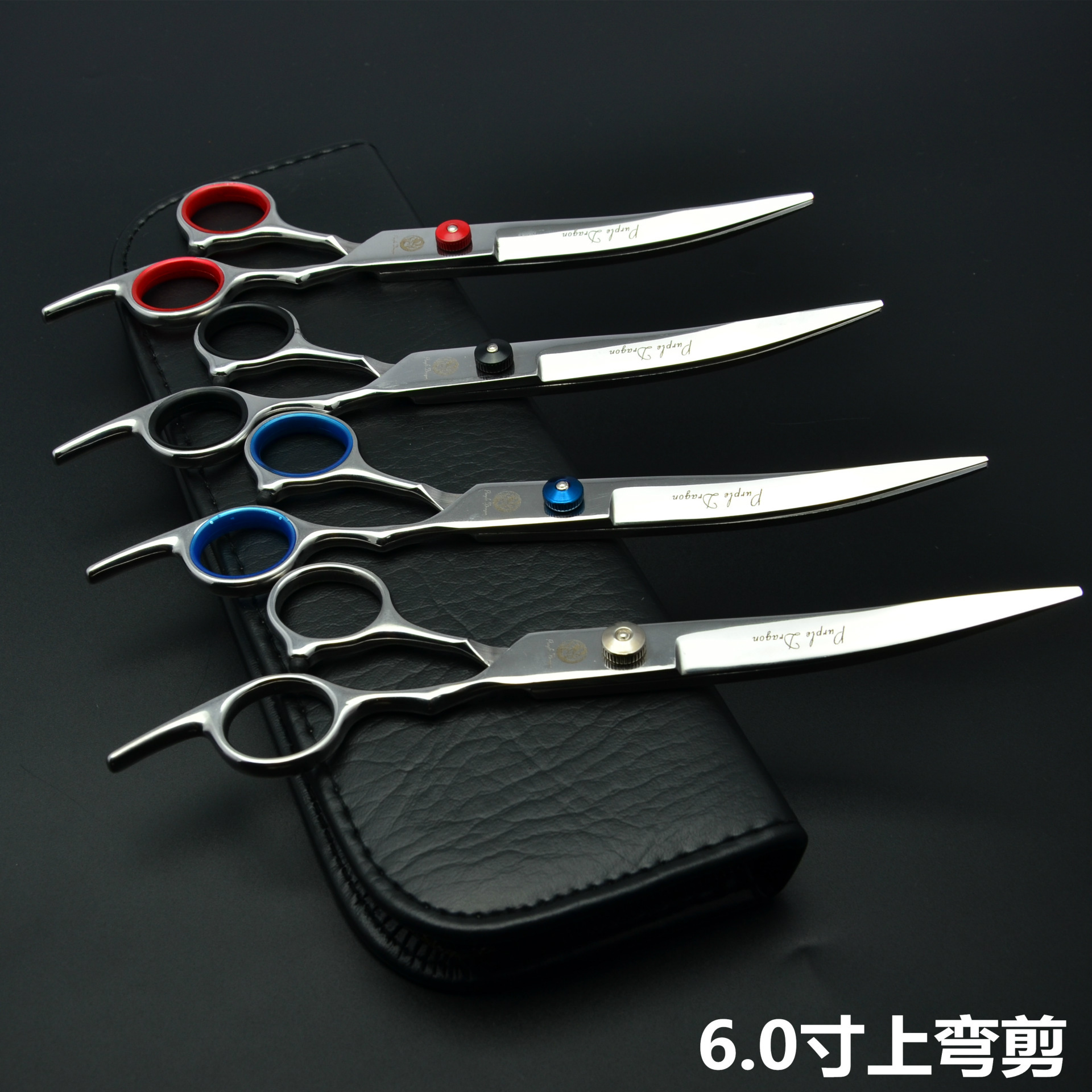 紫龍7.0寸のネジの理髪ハサミの上で曲がったハサミを上げて毛を切って美容を切って多色を切って選択します。