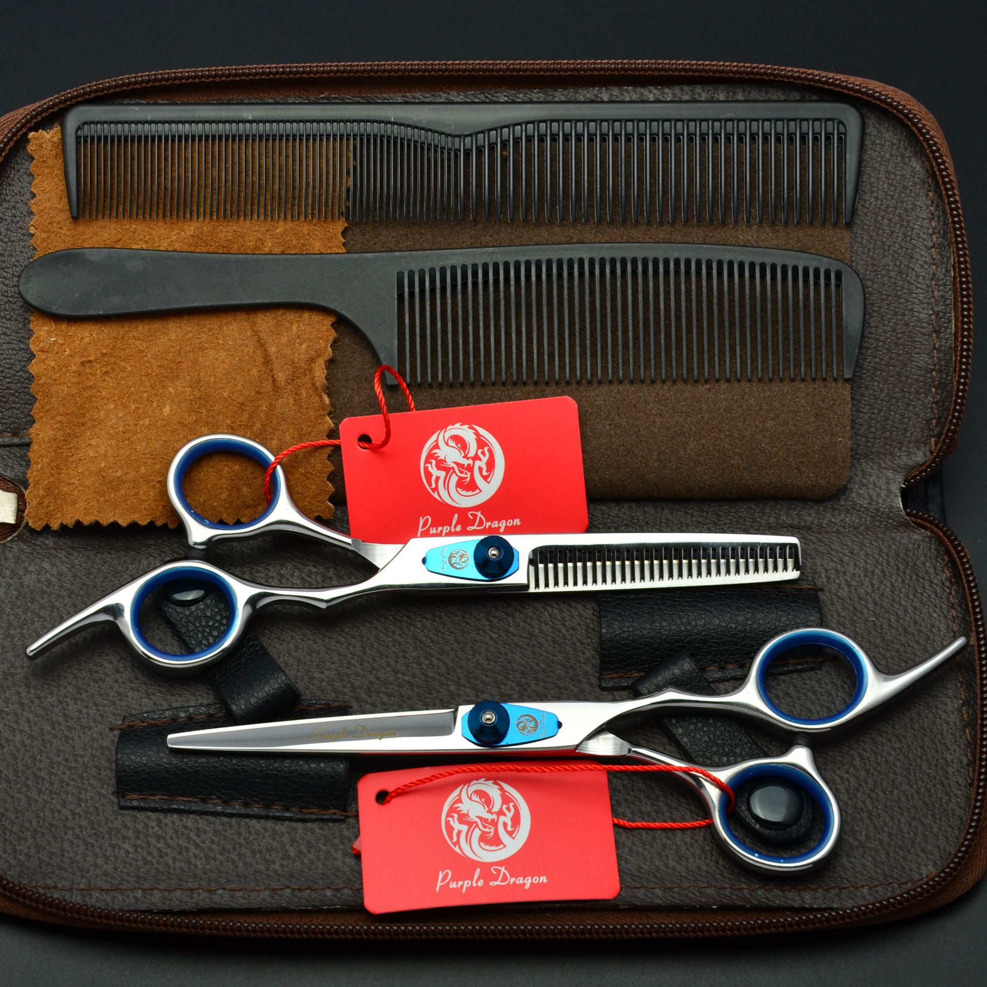 紫龍6.0寸銀色美髪ハサミ平切劉海剪歯切薄切散髪ハサミセット