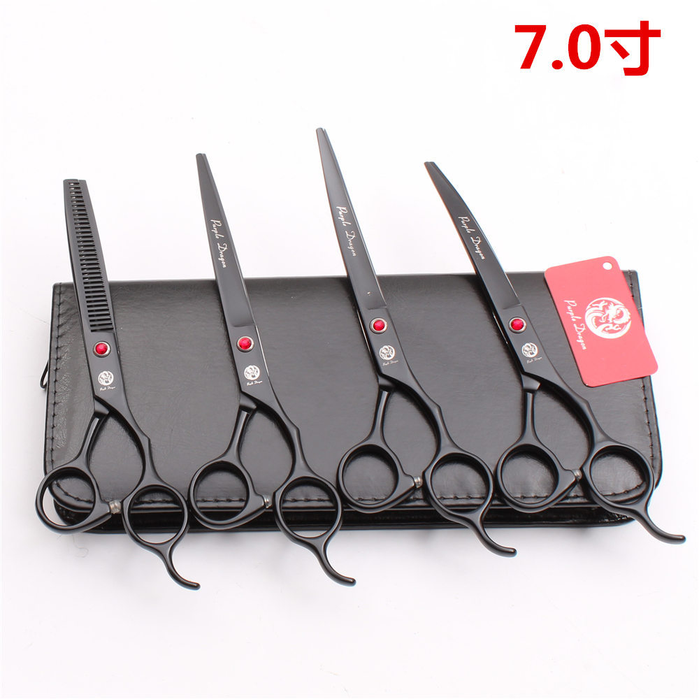紫竜の7寸のペットのはさみの黒色の平切の歯は曲がって切って犬を切って毛を修理します。