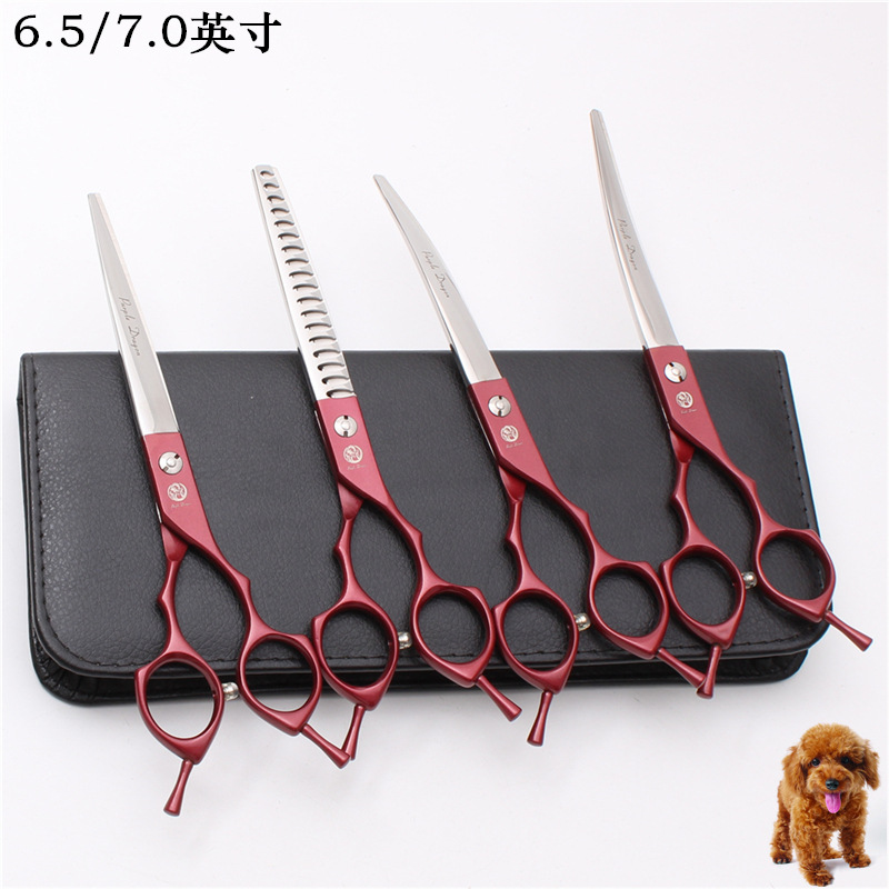 紫龍赤いペットはさみはまっすぐに切って、上下に曲がって、魚の骨の歯を切って美容セットを切ります。6.5/7インチです。
