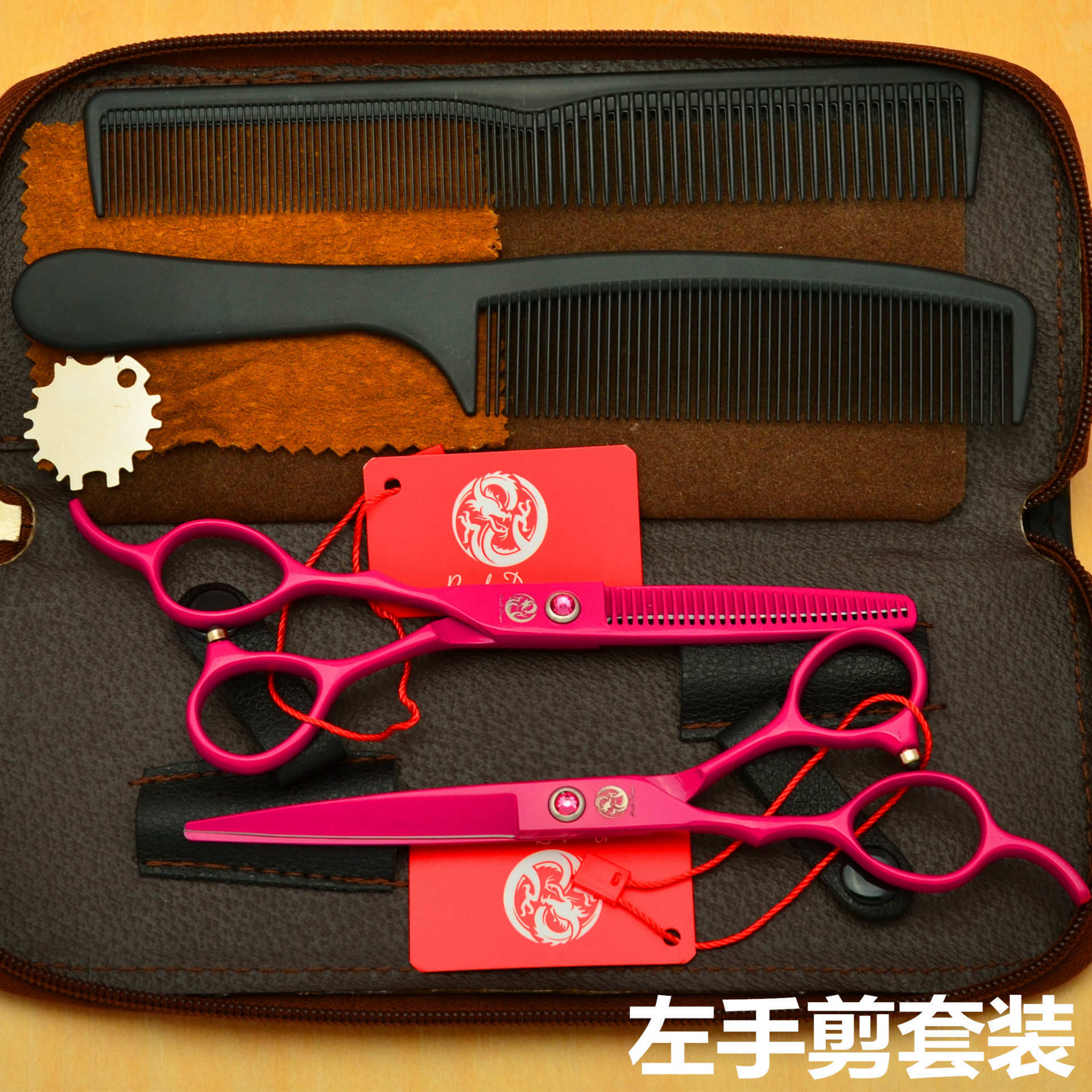 紫龍薔薇赤色左手ハサミ散髪ハサミ左利き平切歯切り5.5インチ6.0セット