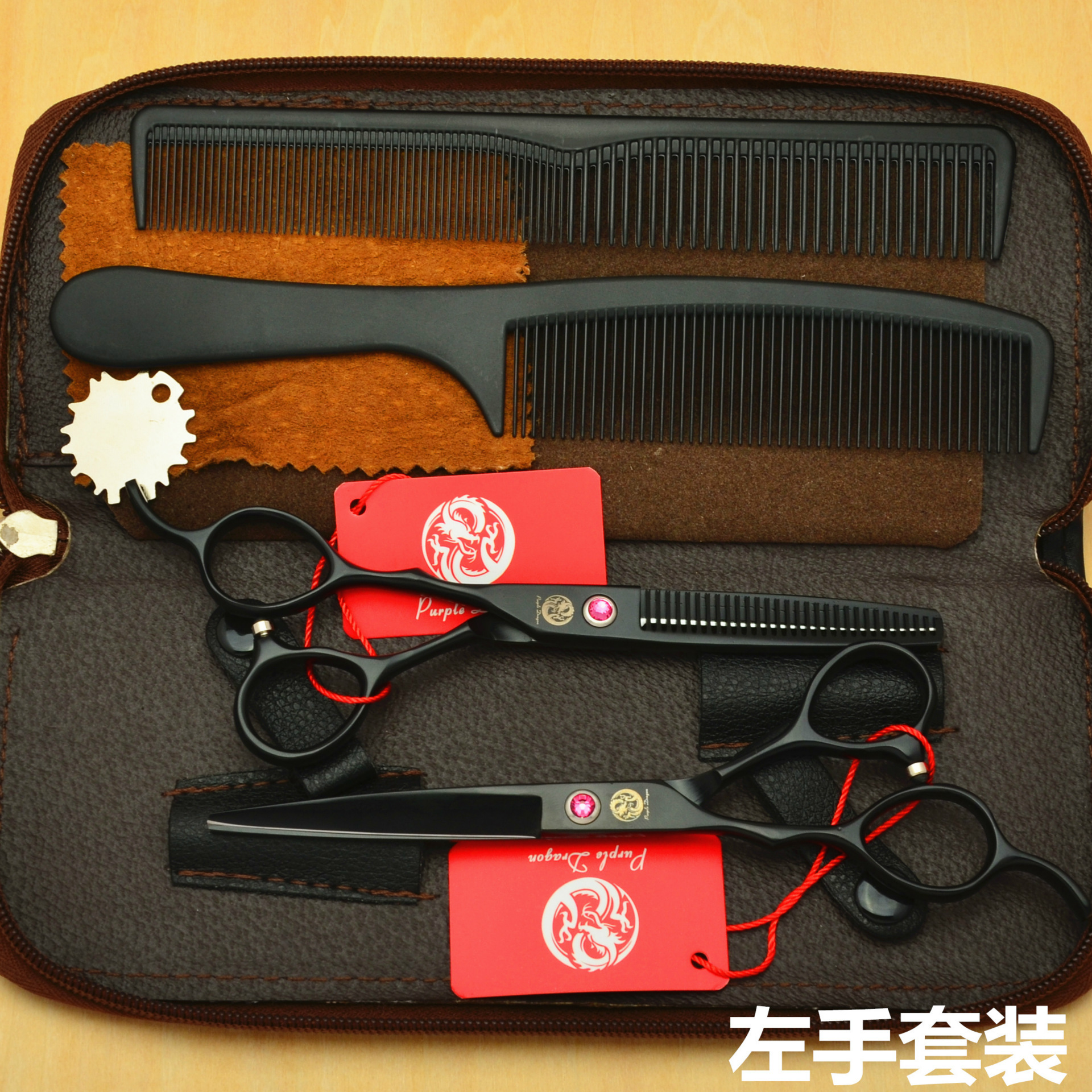 紫龍5.5インチ6.0インチ理髪ハサミ黒平ハサミ薄い左手ハサミセット