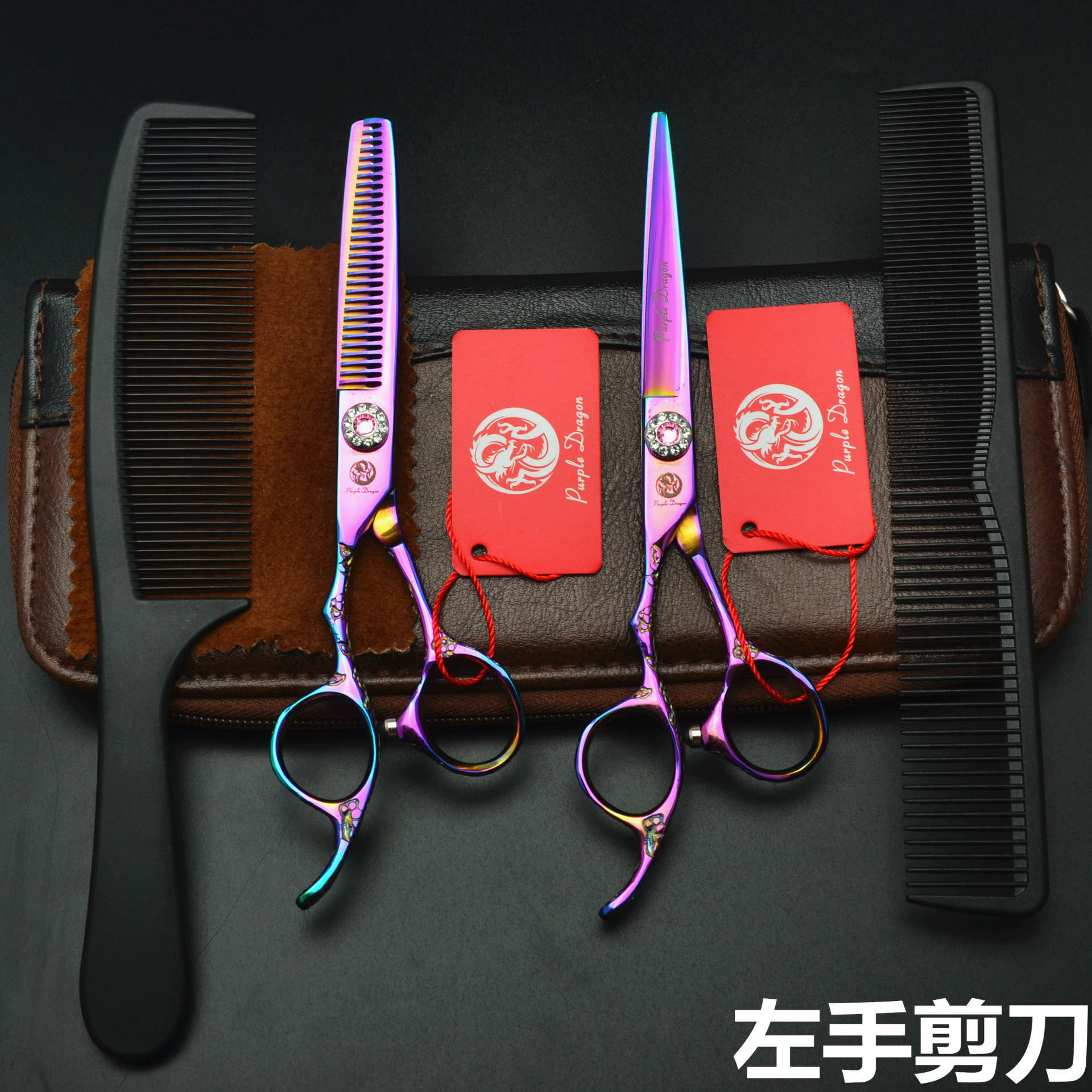 紫龍左手ハサミ理髪カット紫美髪ハサミ5.5インチ6.0インチ左利き平切歯ハサミ