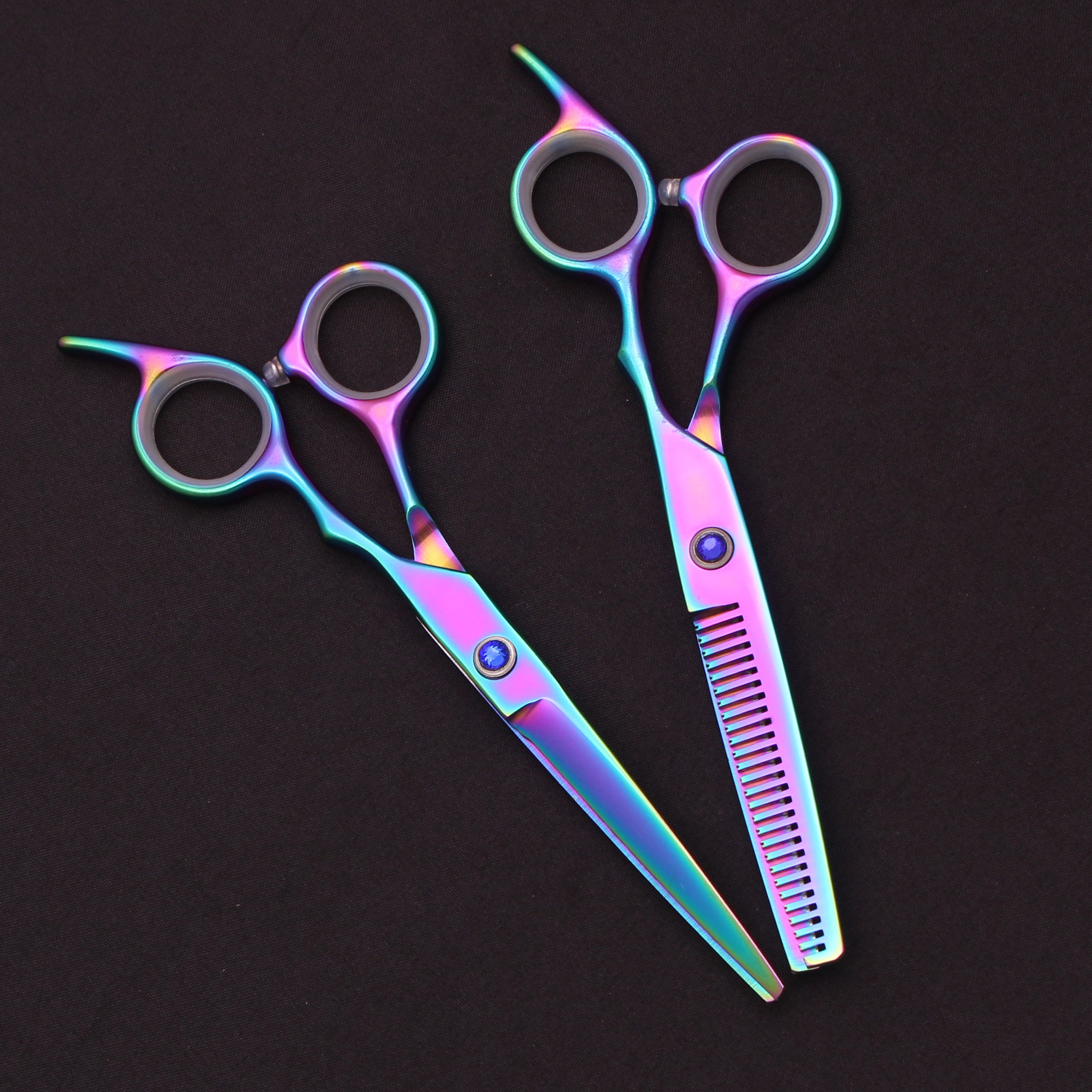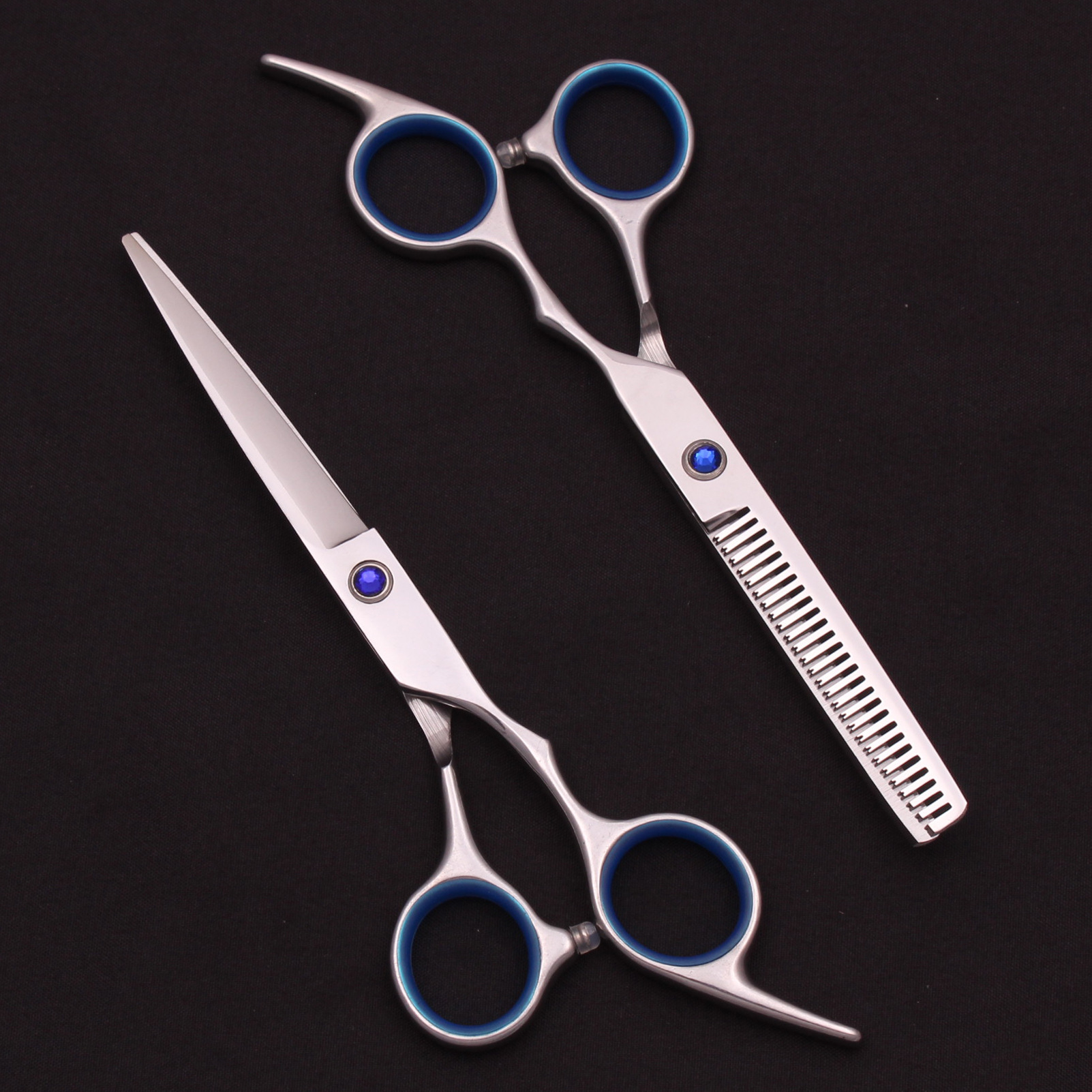 6.0インチ散髪ハサミ高ナット平切歯切黒青家庭用切前髪見習い練習手対外貿易クロスボーダー