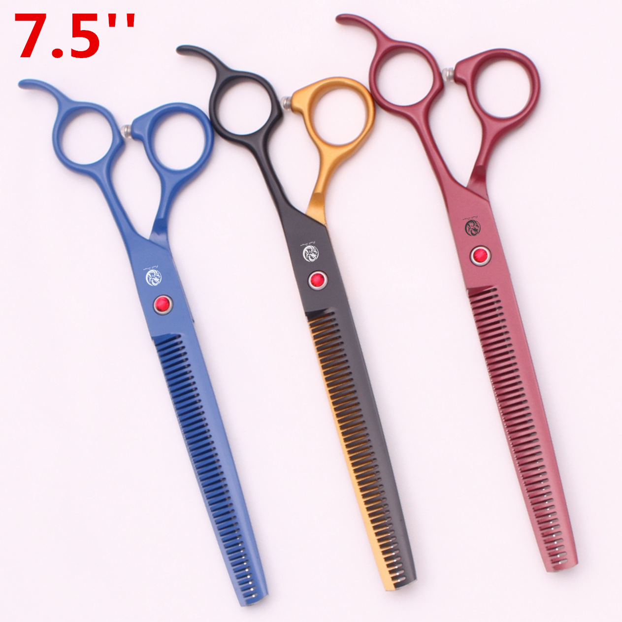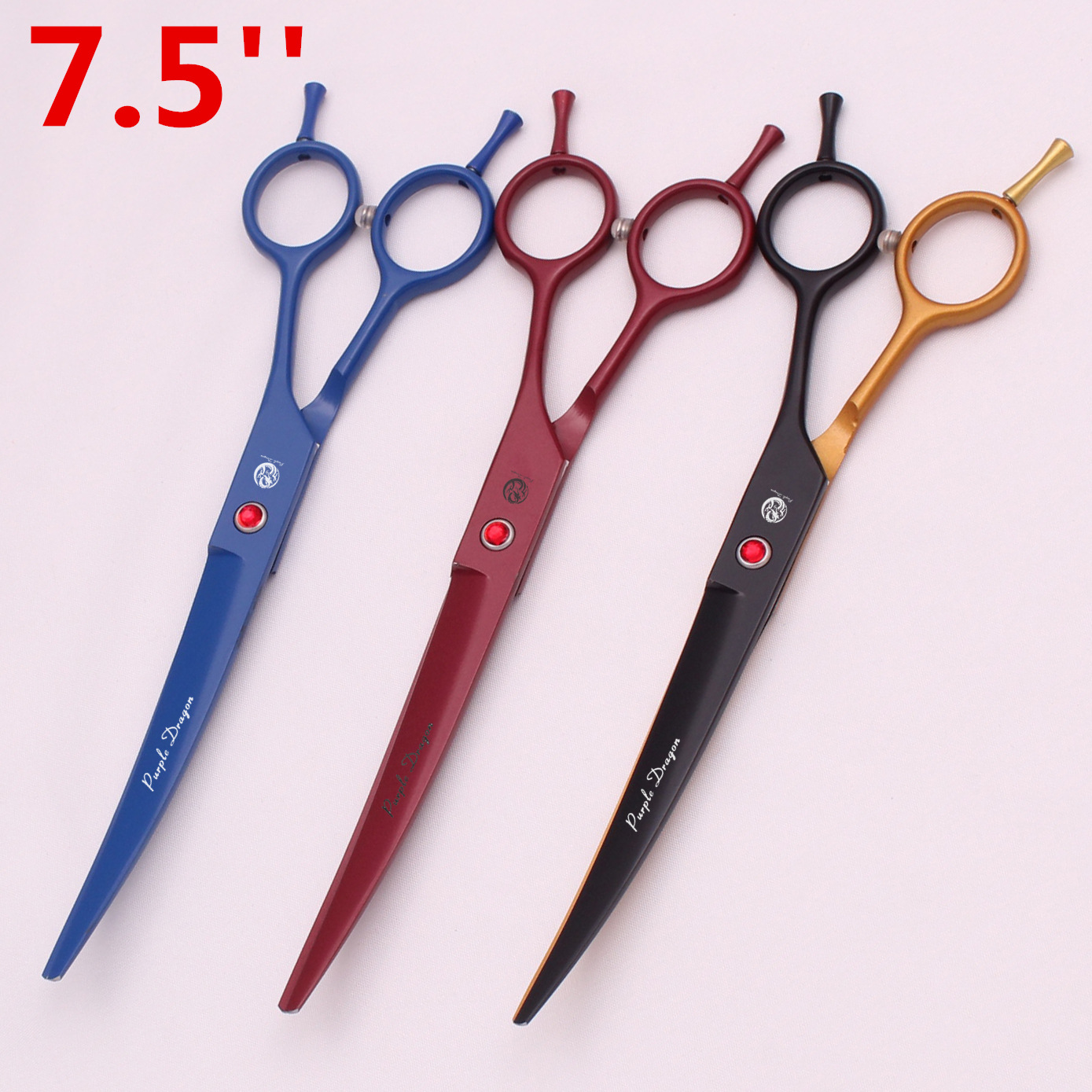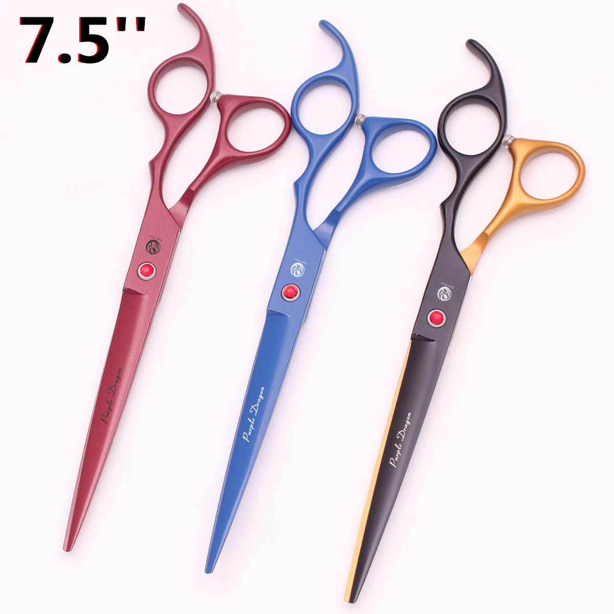 紫龍ペットはさみ7.5インチストレートカット青赤黒金トリミング犬貴賓金毛美容