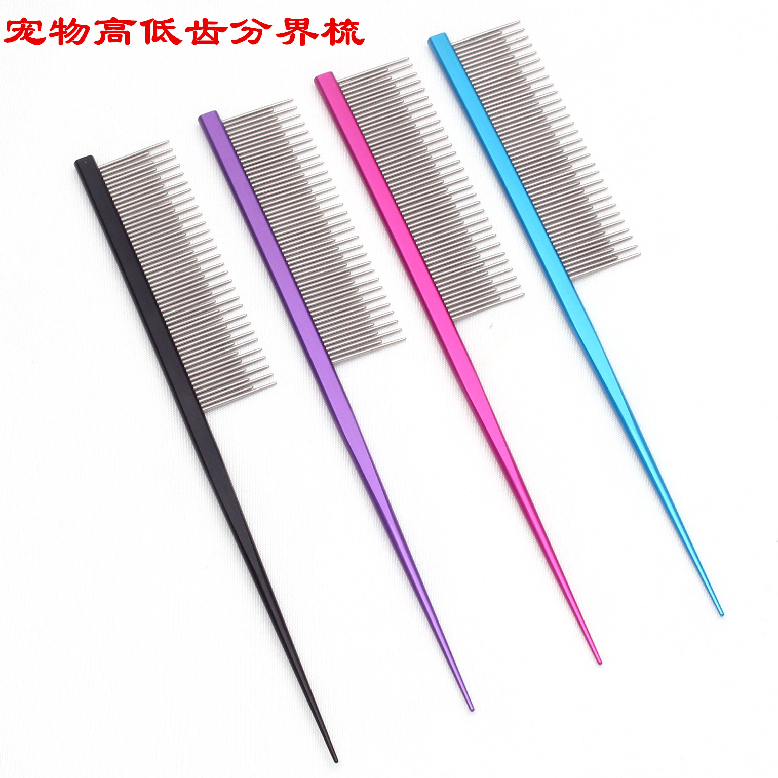 疎密な歯は浮毛の平たい柄の布の人形の英の短い猫の櫛の犬の長さの針はペット用品の美容の櫛を並べます。