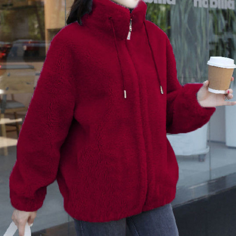 コートの女性の潮insは冬にベルベットを厚くして両面のベルベットの立襟を厚くして保温しているセーターの女性のカーディガンのジッパーでベルベットの女性をつかむ