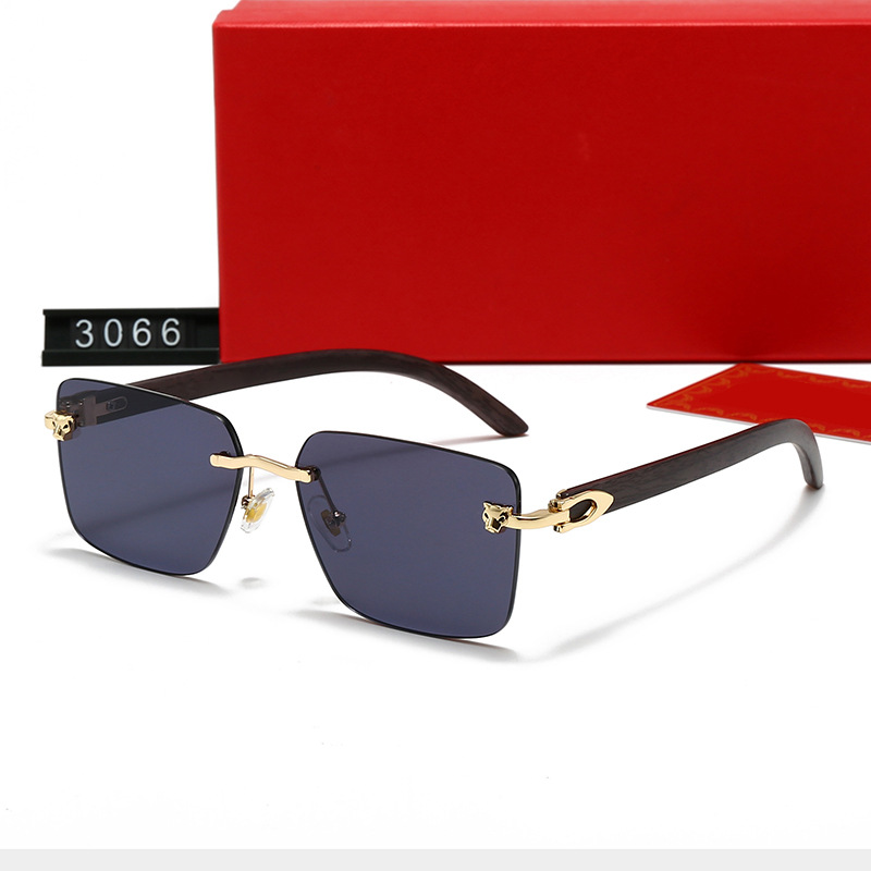 新型欧米の四角いサングラスが国境を越えた新型ヒョウの木目脚に縁のない男性サングラス3066