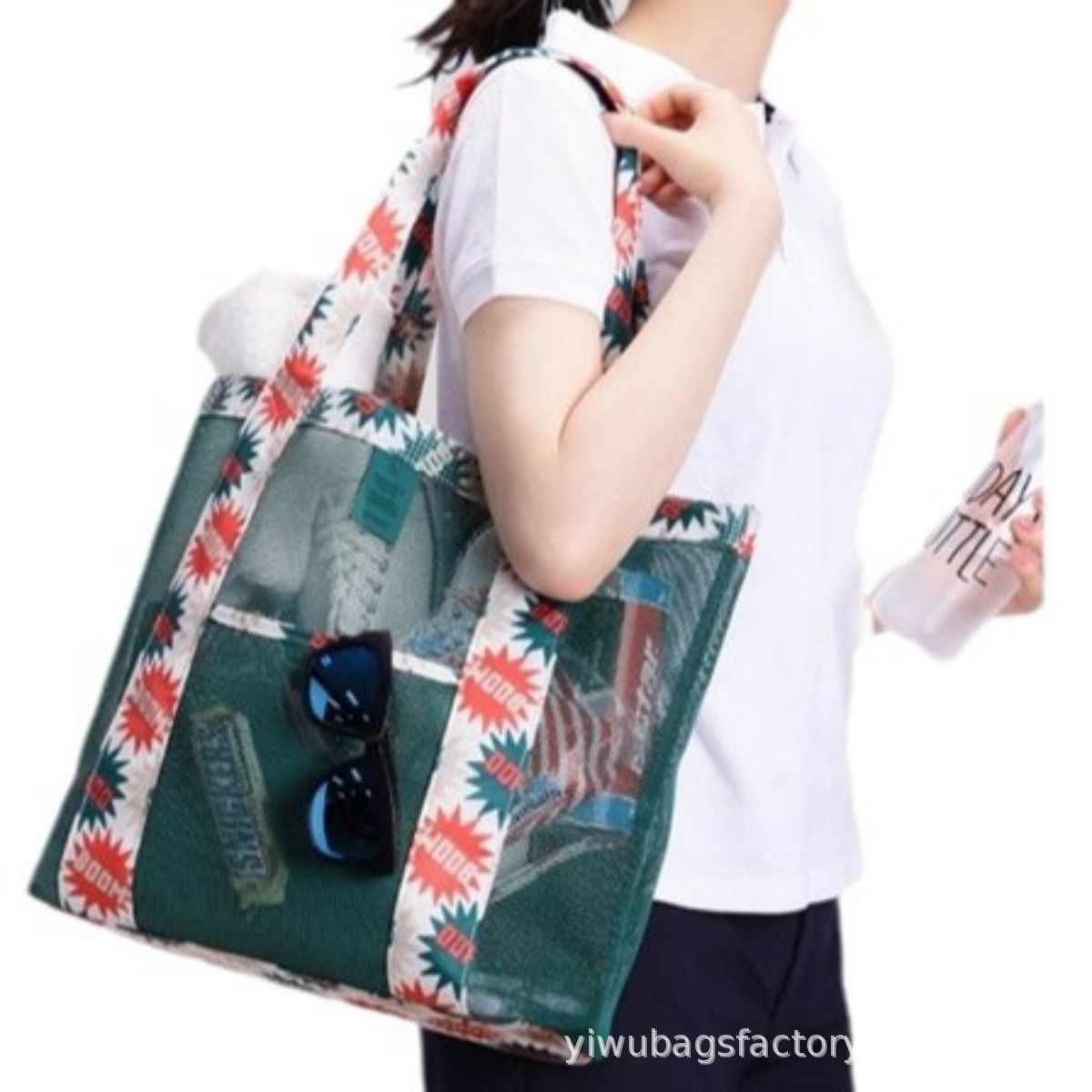 大容量玩具メッシュビーチバッグ水泳バッグ多機能旅行手持ちシングル肩ビーチバッグ水着収納バッグ