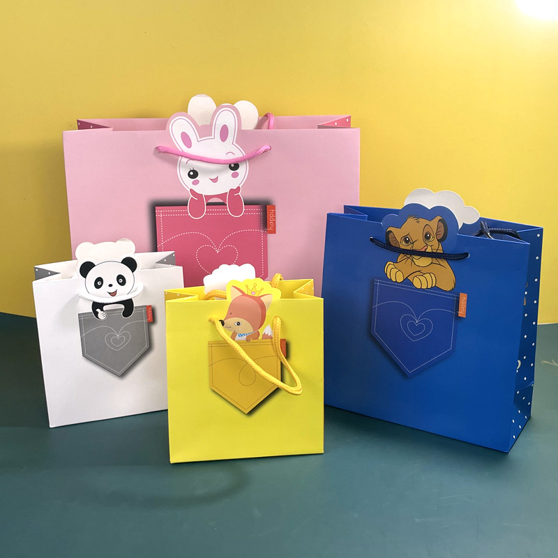 子供の動物の漫画の贈り物の包装袋の高級感の贈り物の袋のお土産の袋の紙の手提げ袋
